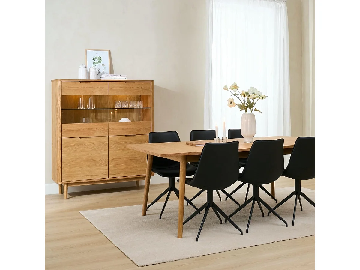 Rechthoekige Uitschuifbare eettafel Nyborg - 6 à 8 personen- MDF & eiken fineer - Natuurlijk olie