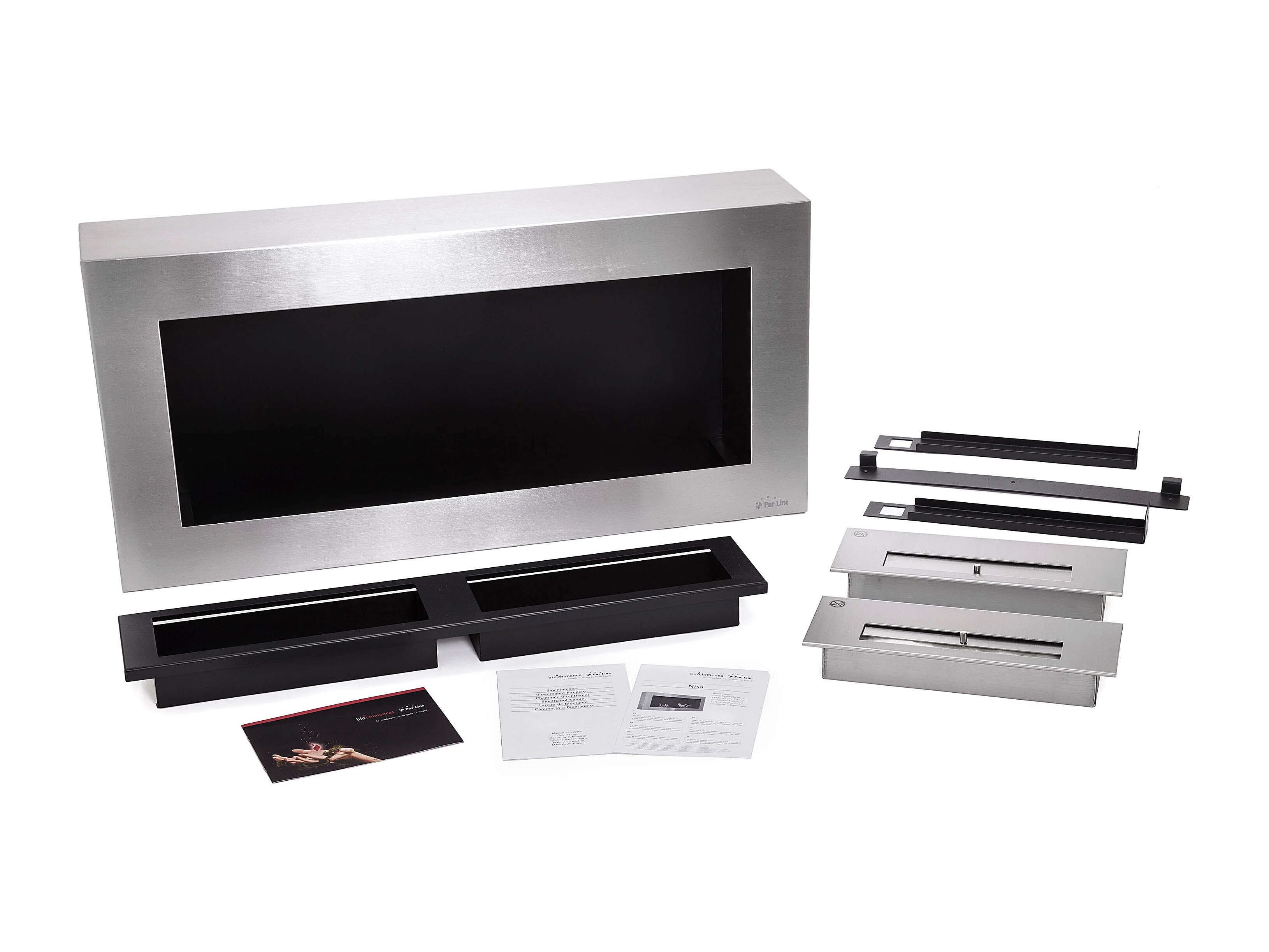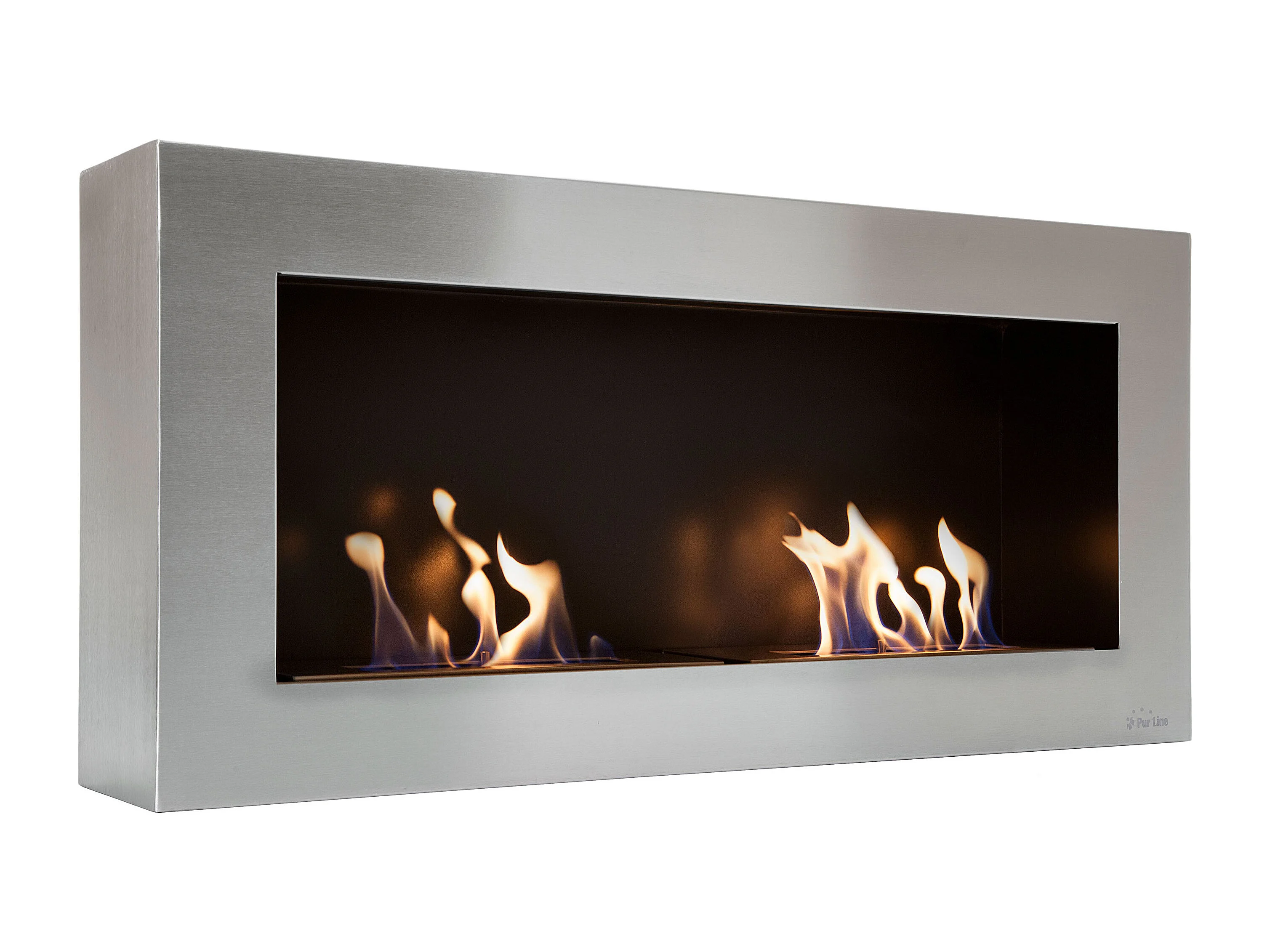 Rechthoekige wandhaard met dubbele vlam in staal, rechthoekig ontwerp, grote breedte