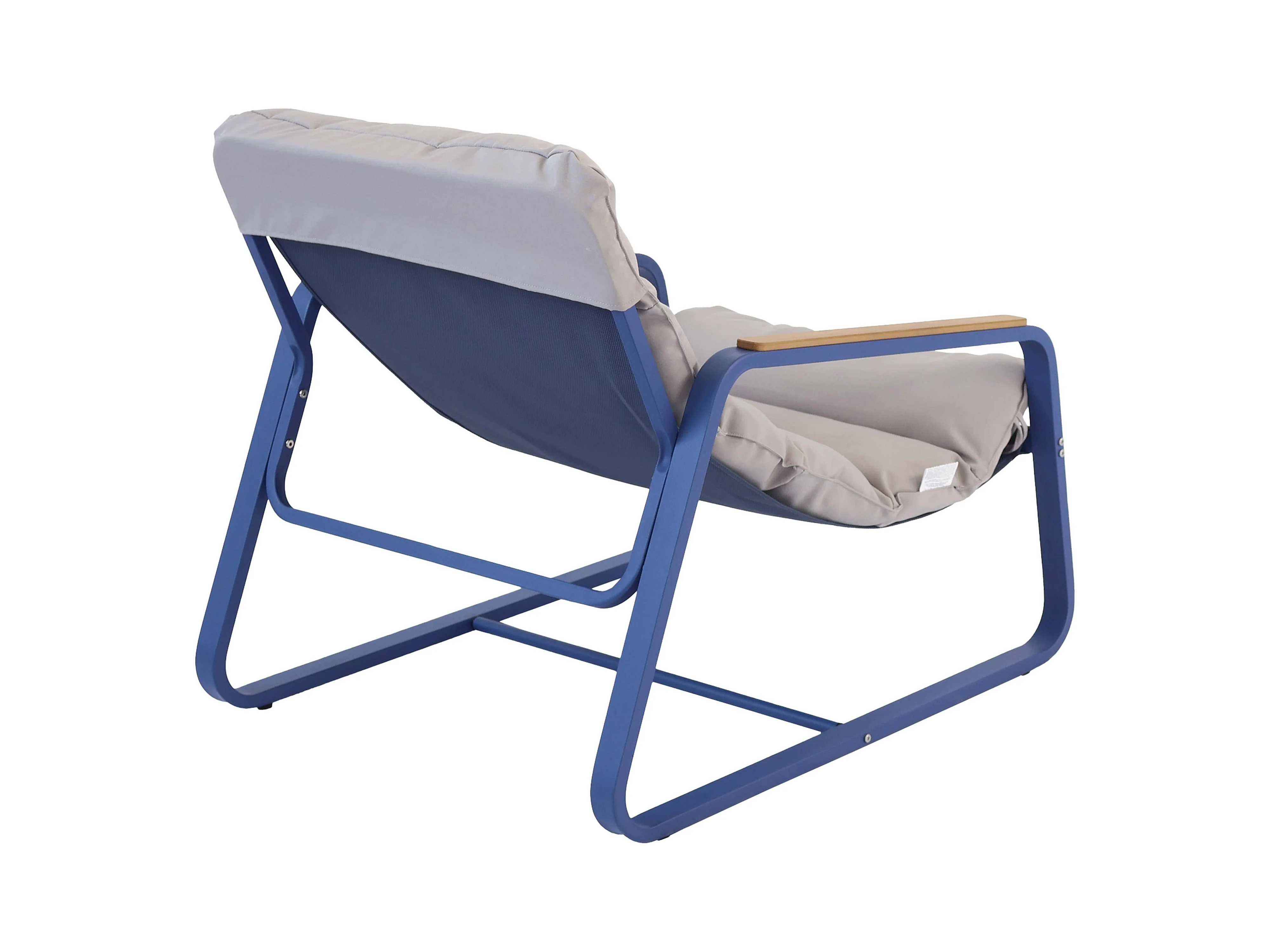 Relaxfauteuil in staal en textiel met pacific blue voetsteun