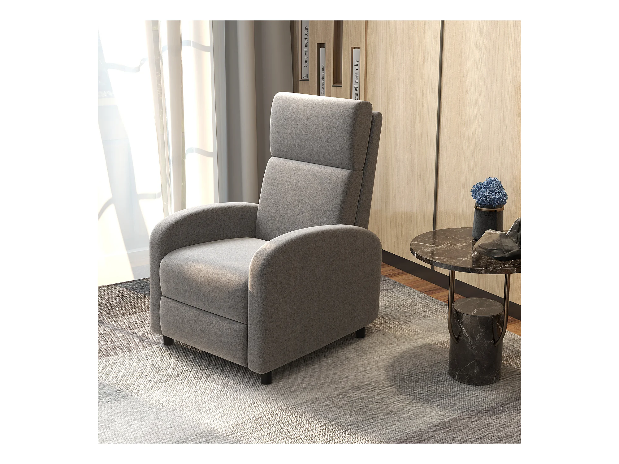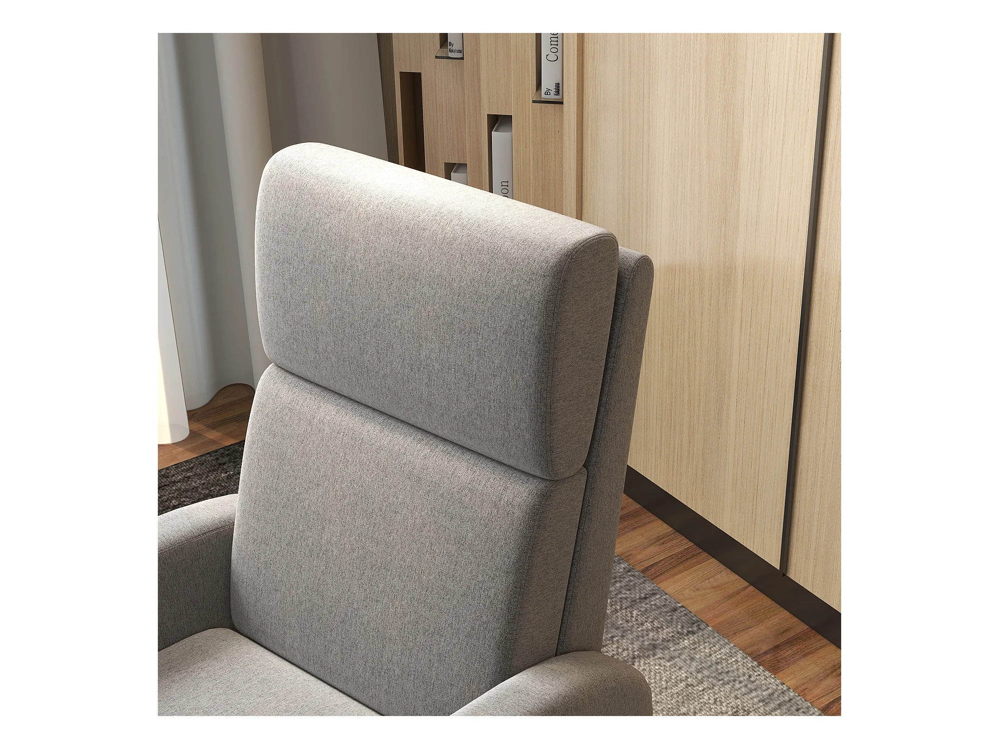 150° relaxfauteuil, linnen, donkergrijs, frame van hout en metaal (93x88x102cm)