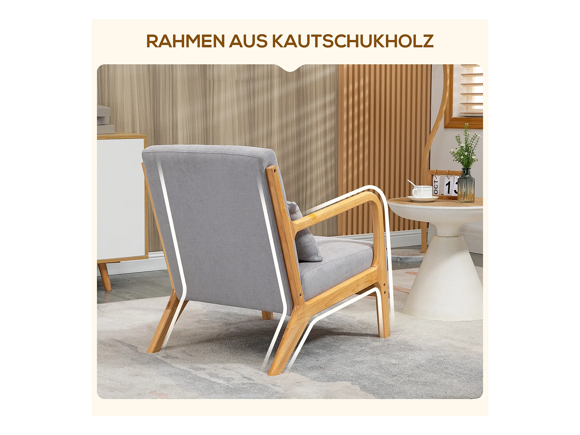 Relaxfauteuil met armleuningen en lendenkussen, fluwelen stof, hout, grijs, (78x61x76 cm)