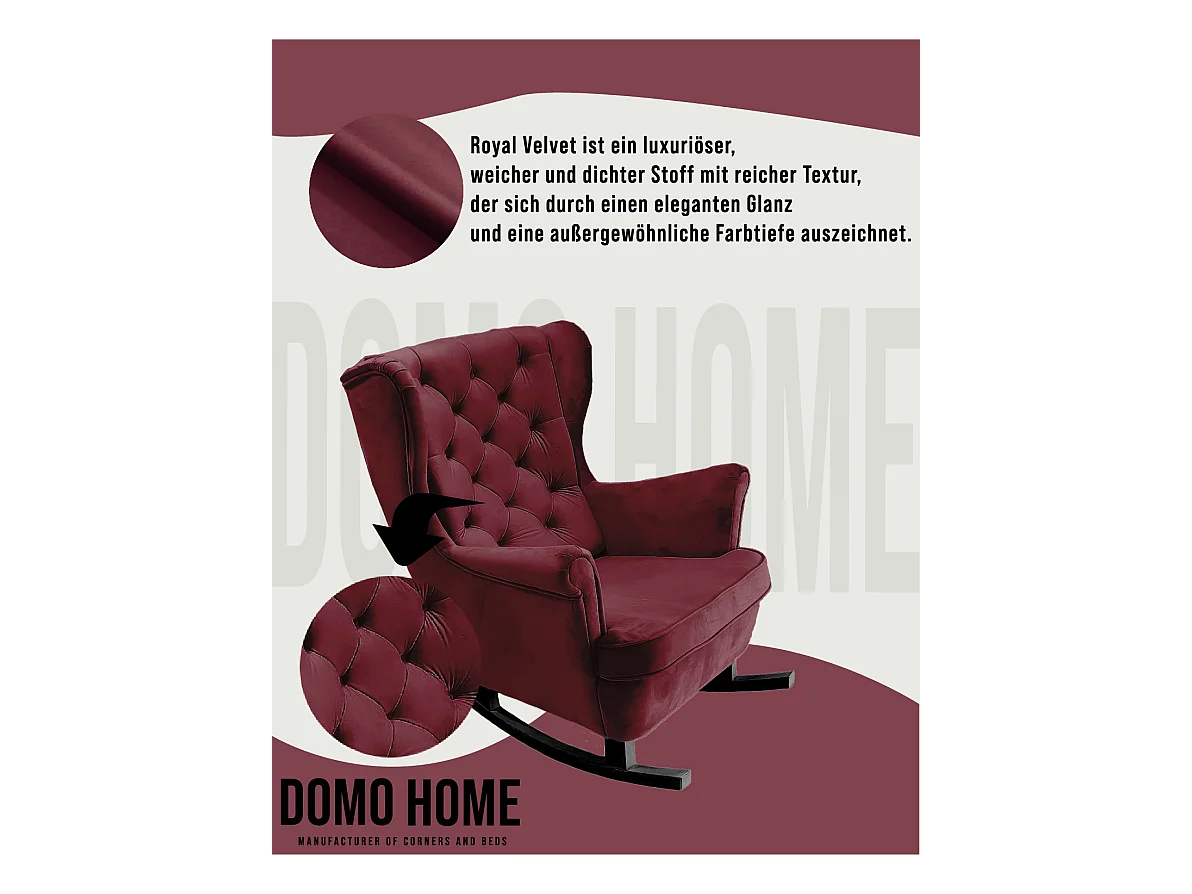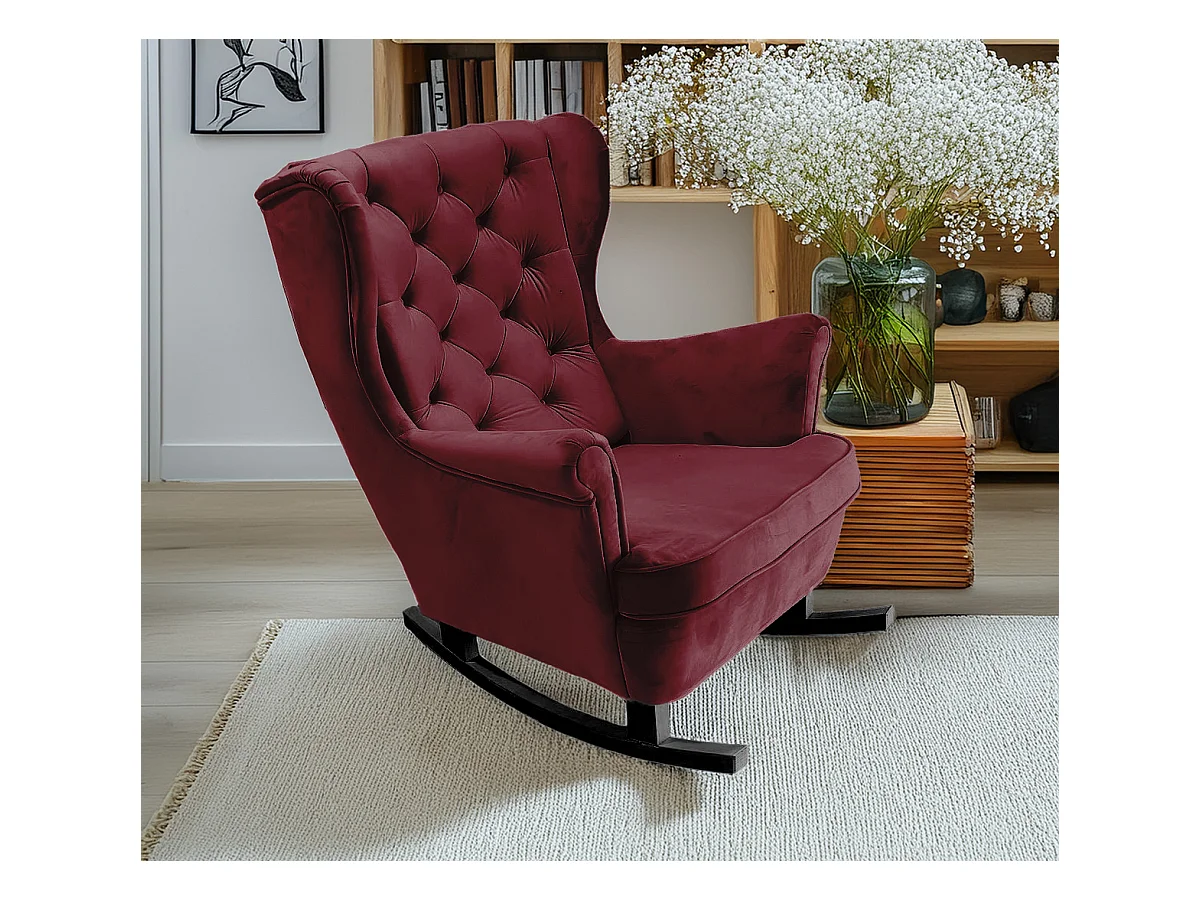 Schommelstoel rubber houten poten Bordeauxrood Fluweel