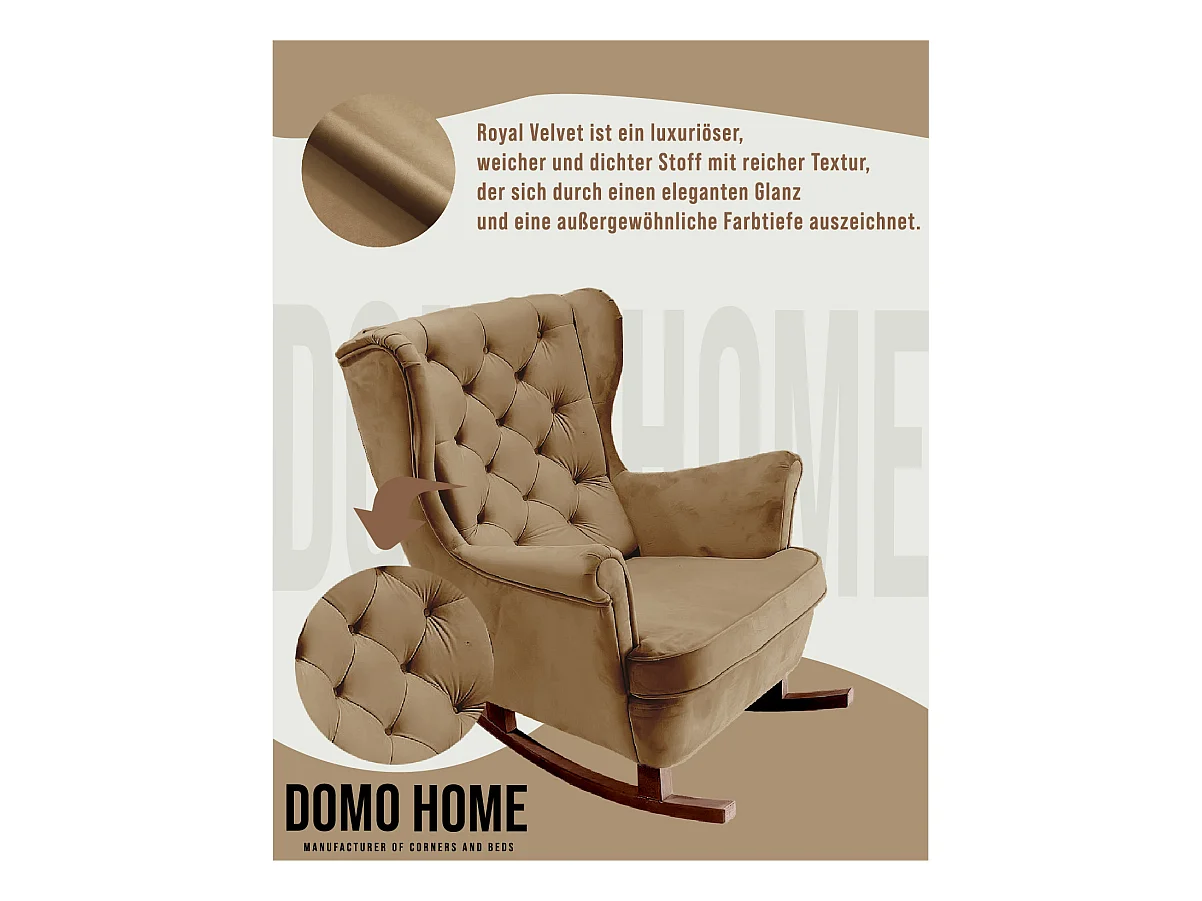 Schommelstoel met massief rubberhouten poten Cream Velvet