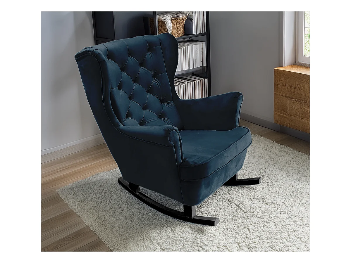 Schommelstoel en poten van massief rubberhout Blue Velvet