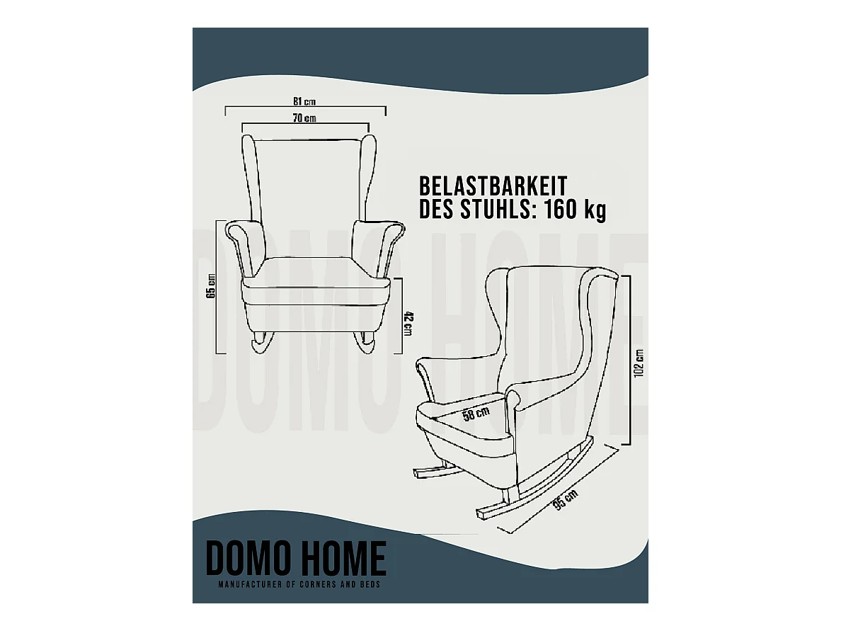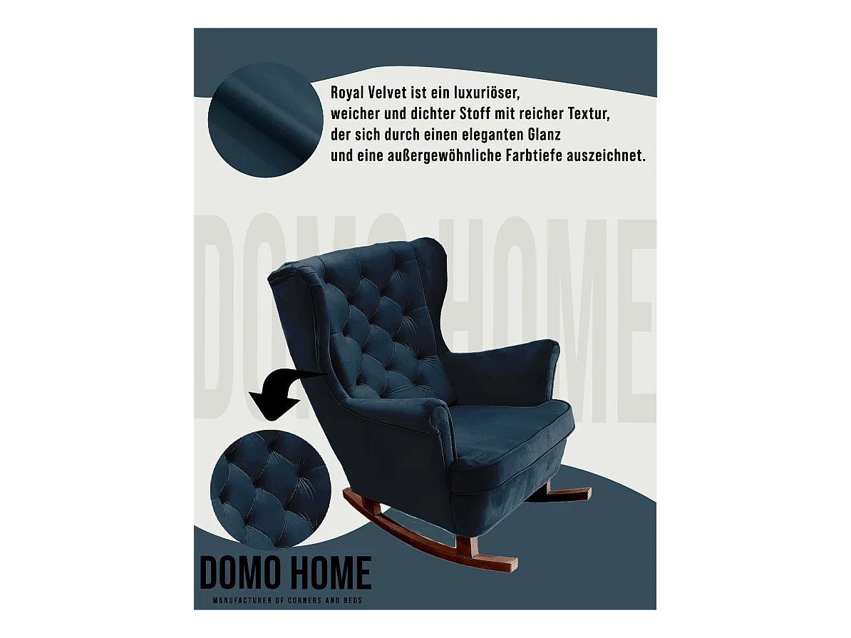 Schommelstoel en poten van massief rubberhout Blue Velvet