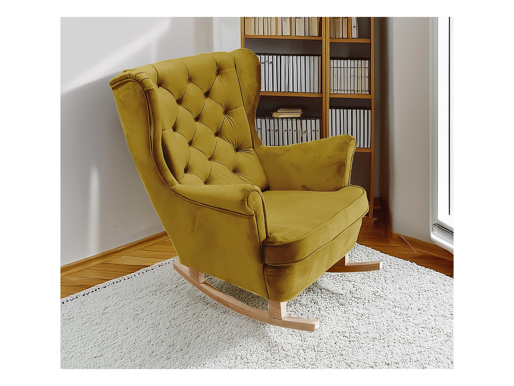 Schommelstoel en rubberhouten poten Lichtgroen fluweel