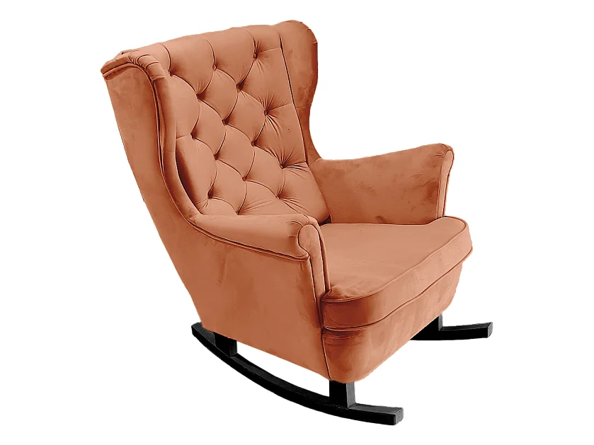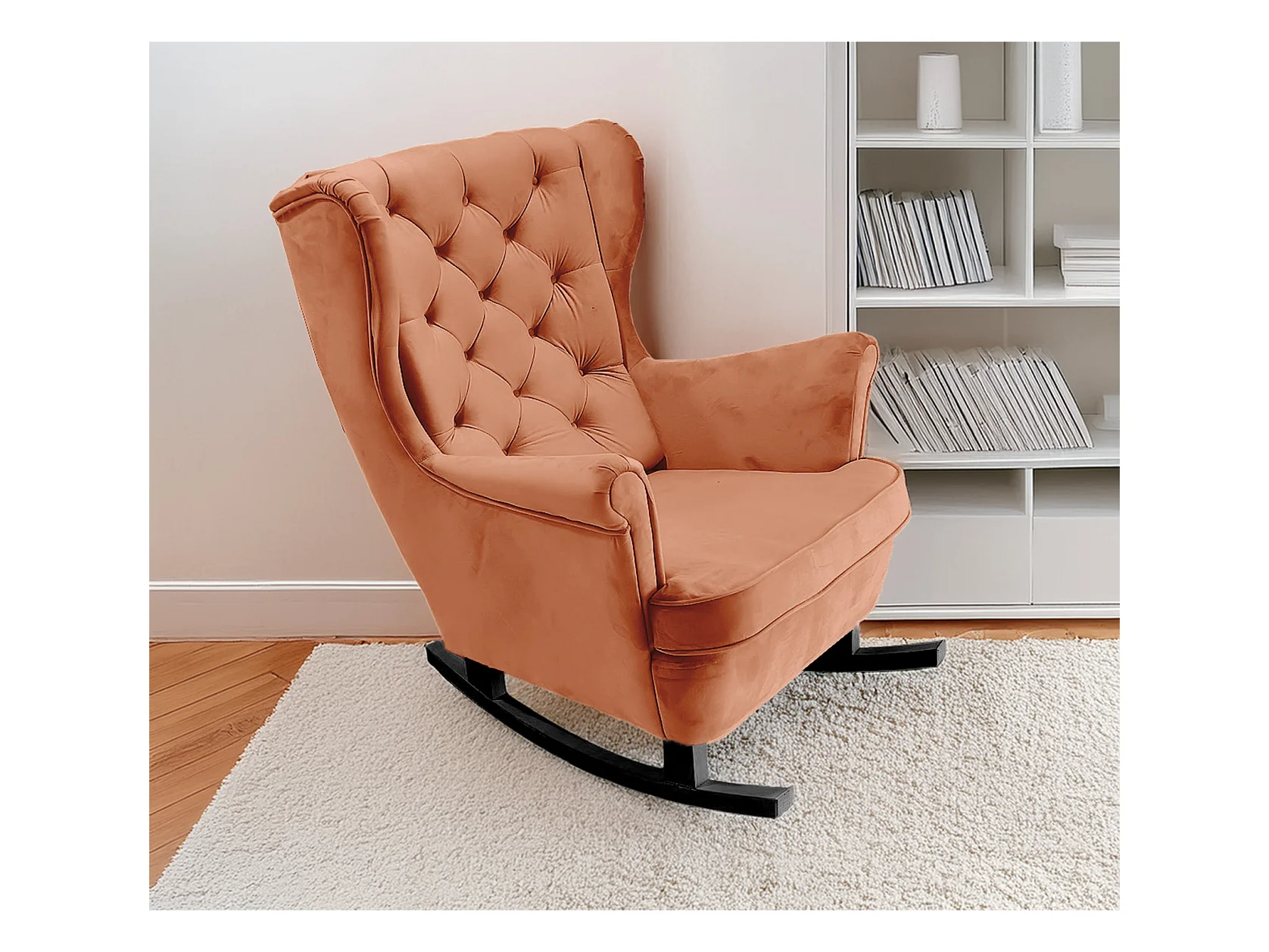 Schommelstoel in luxe fluweel met metalen frame en houten poten voor een comfortabele slaapkamer