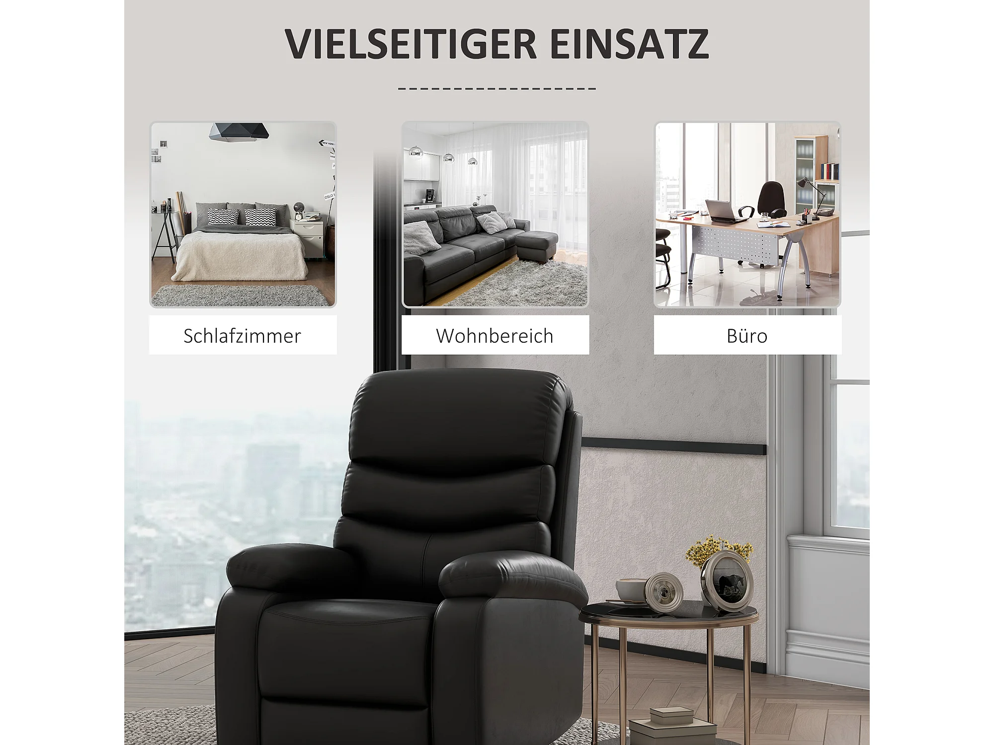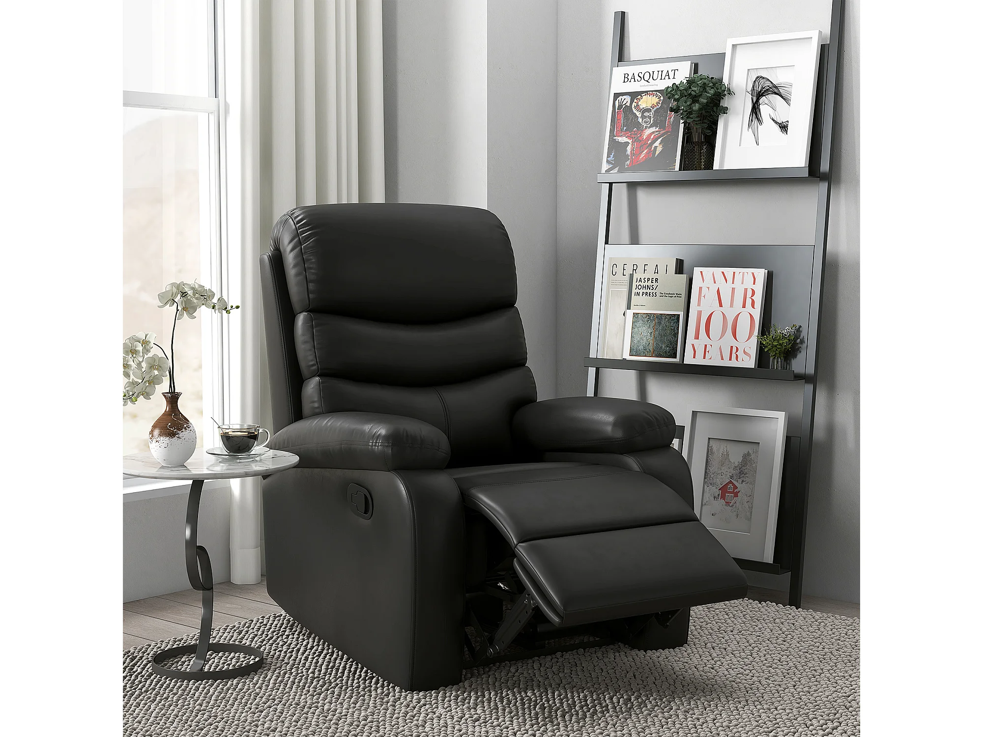 Relaxfauteuil met relaxfunctie, voetenbank, kunstleer, zwart (78x90x105 cm)