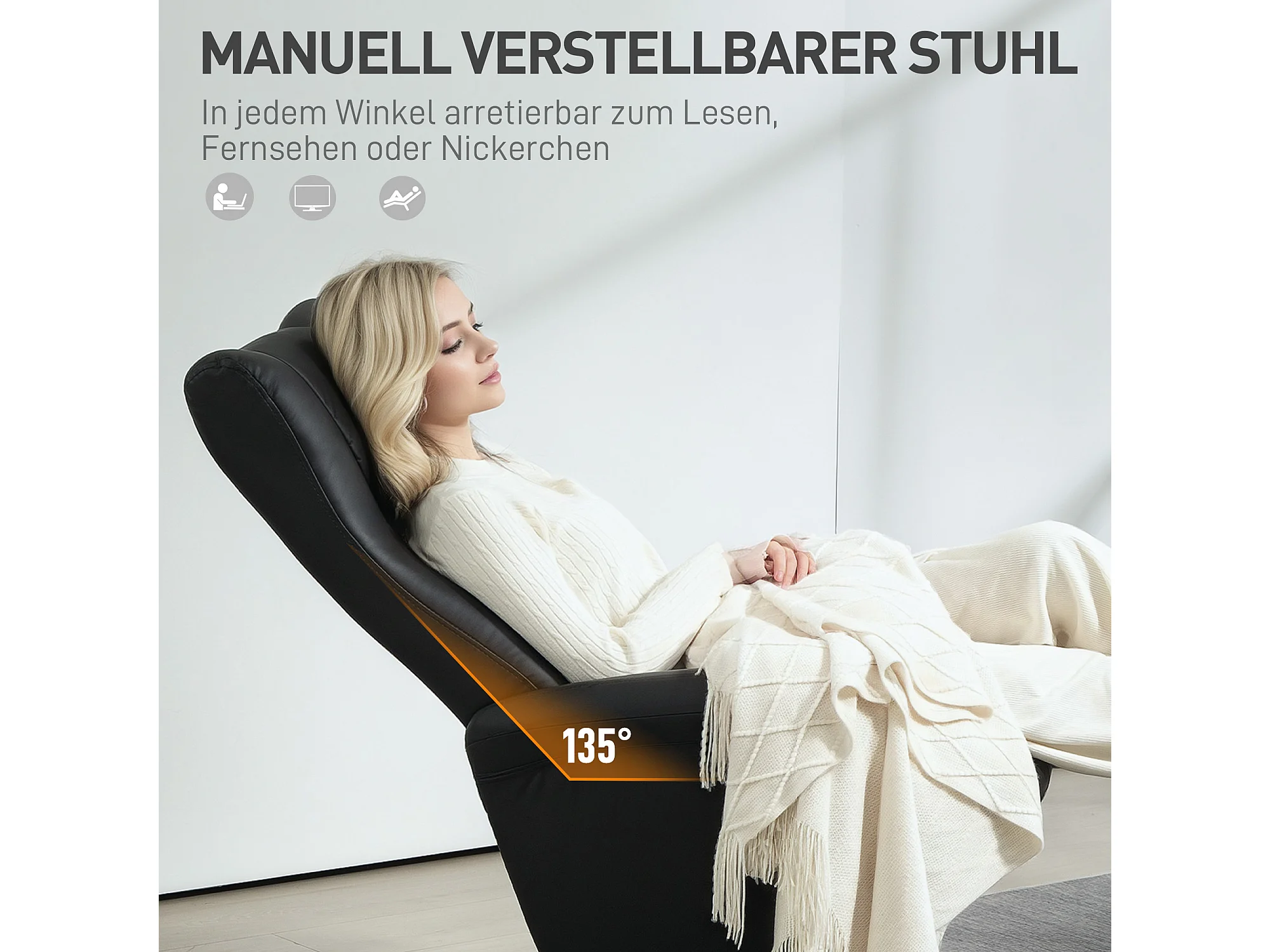 Relaxfauteuil met voetenbankje, 360° draaibaar, relaxfunctie, zwart kunstleer (79x70x105 cm)