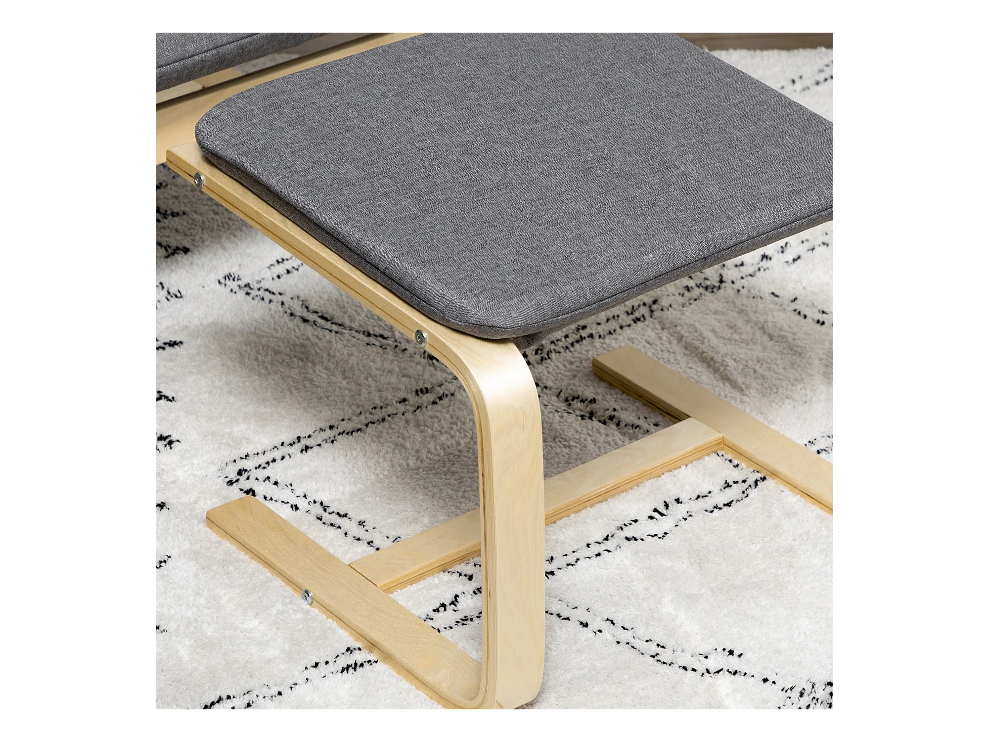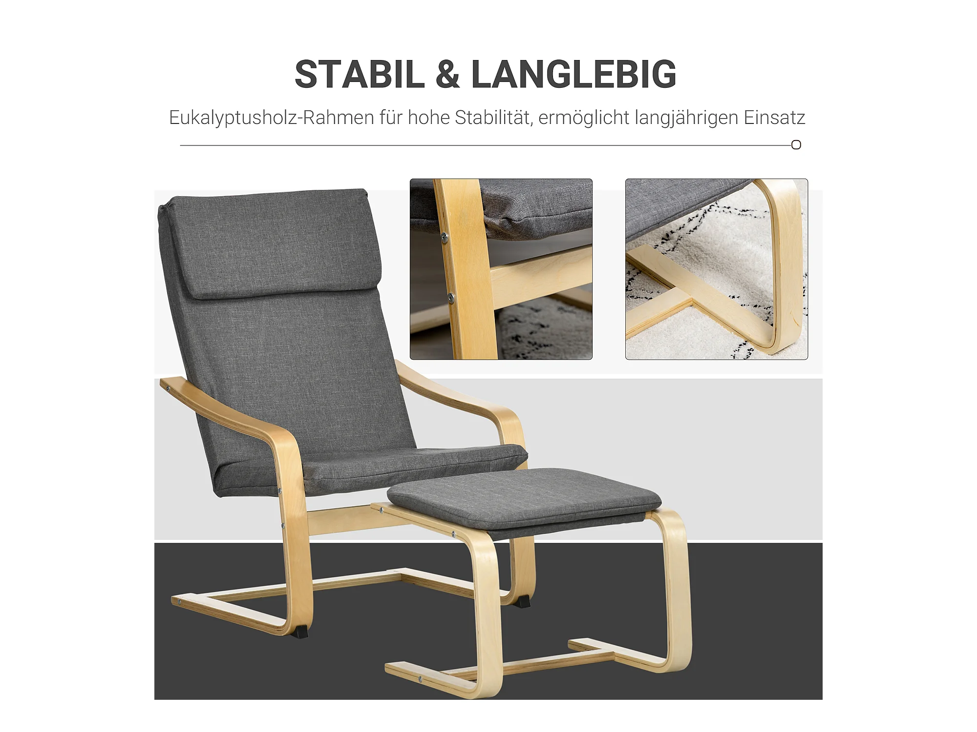 Relaxfauteuil, linnen stof, grijs, met voetenbankje (64x86x102 cm)