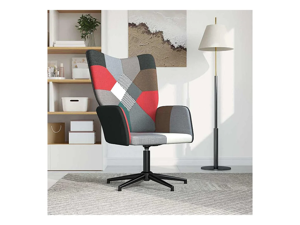Fauteuil met patchwork ontwerp en verchroomde poten kubus stof NL737932