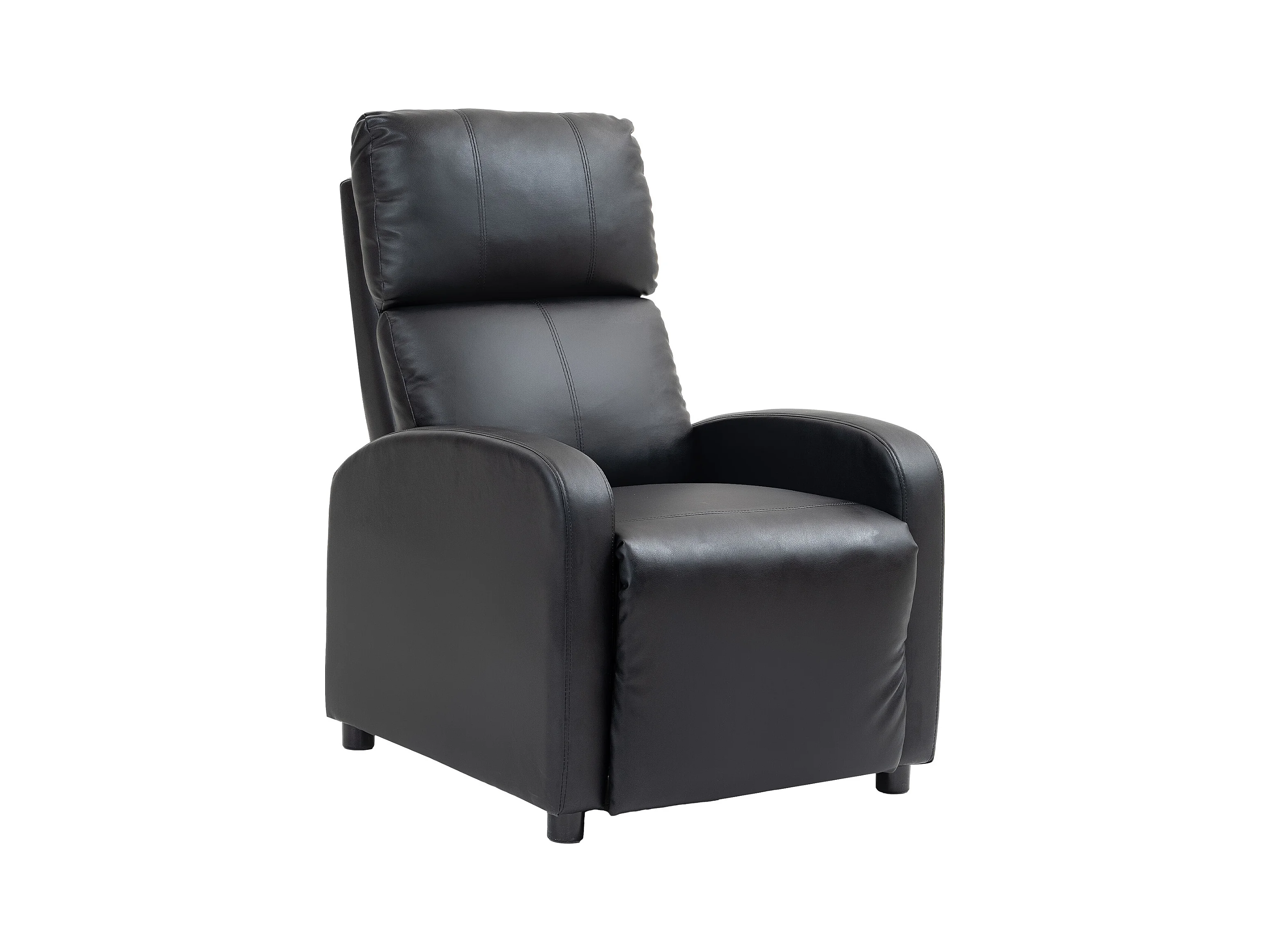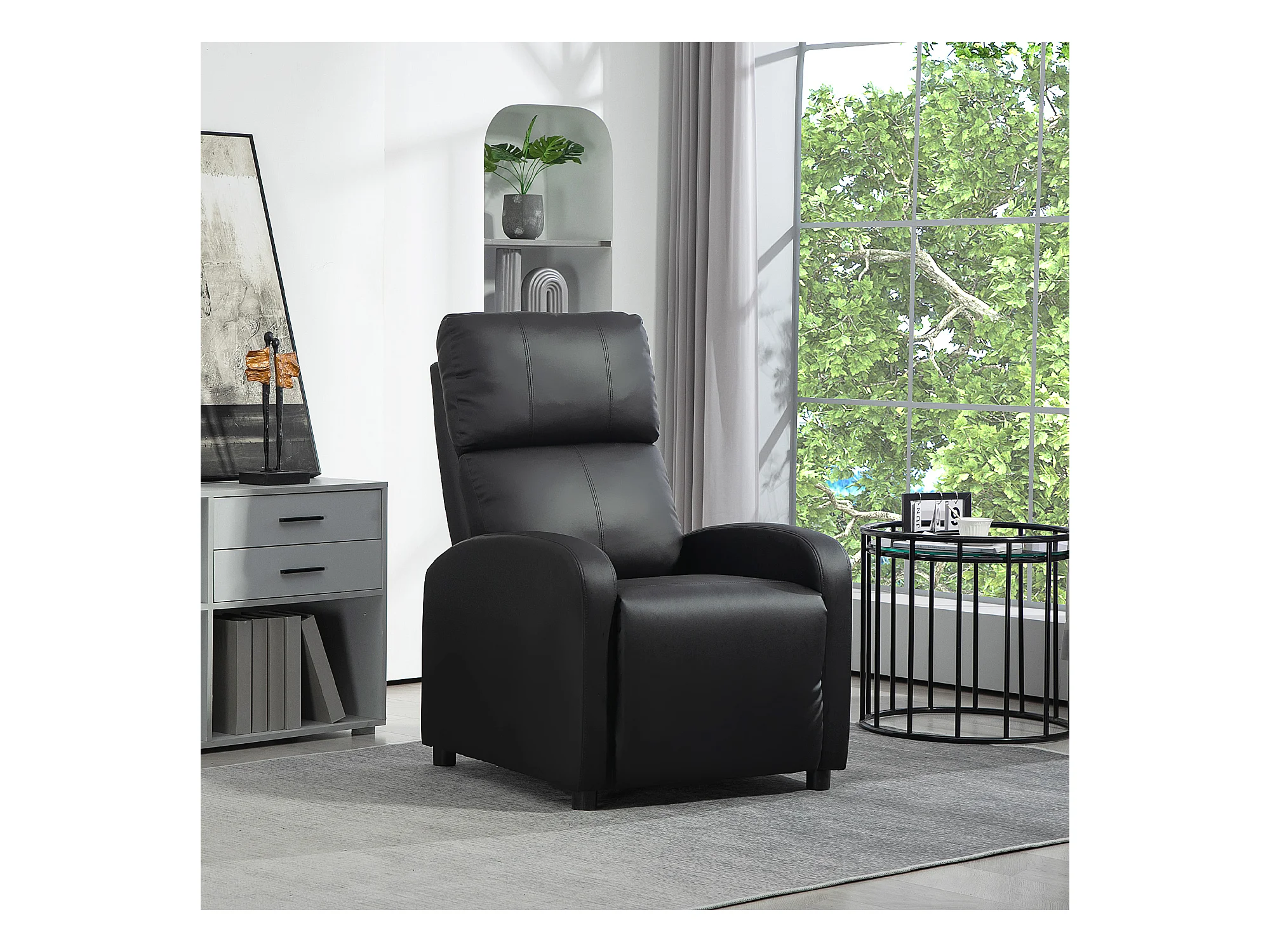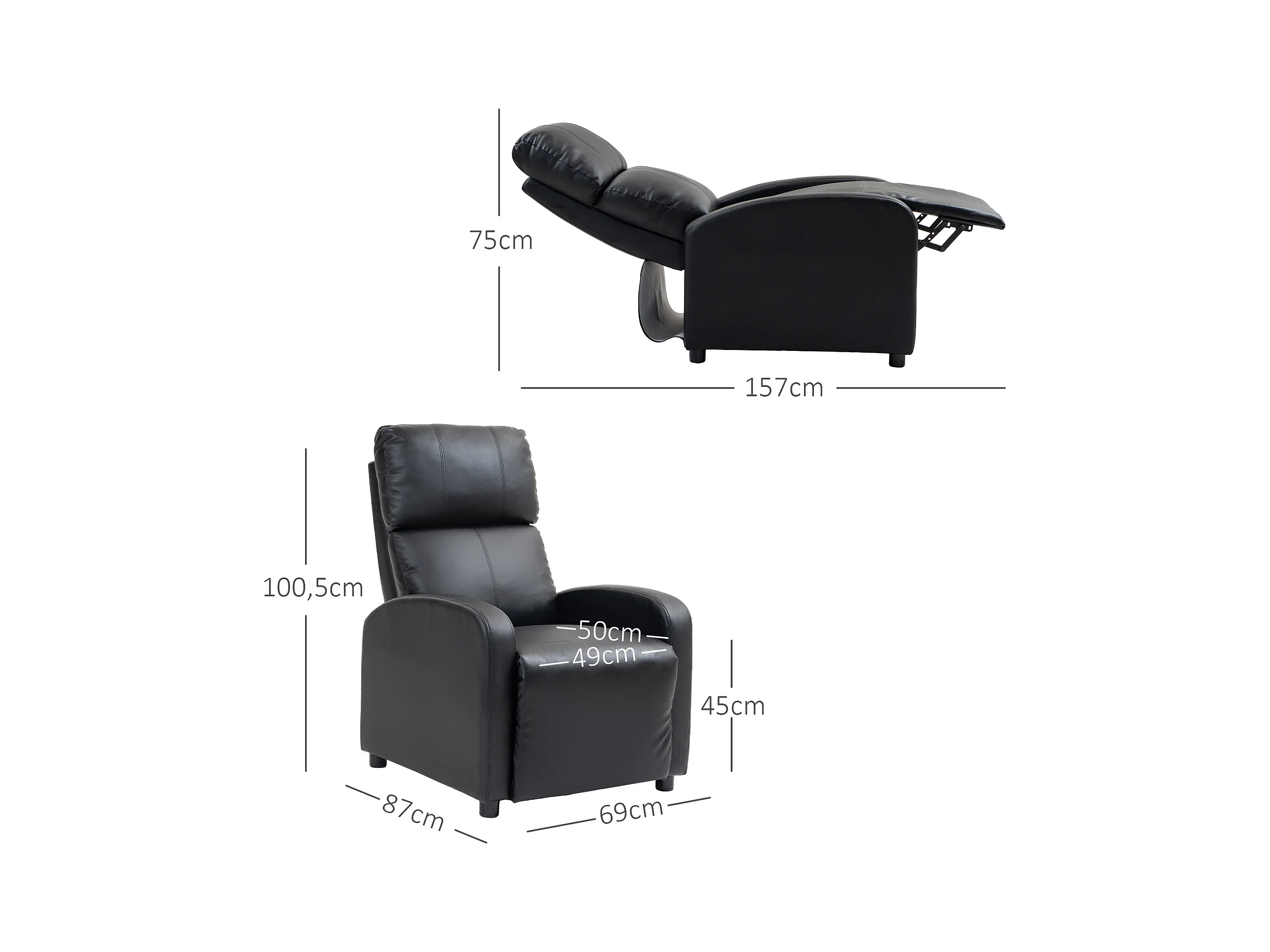 Relaxzetel met ligfunctie, zwarte imitatielederen, ergonomische houten stoel, voor woonkamer en ontspanning (69,5x89,5x104,5 cm) ###