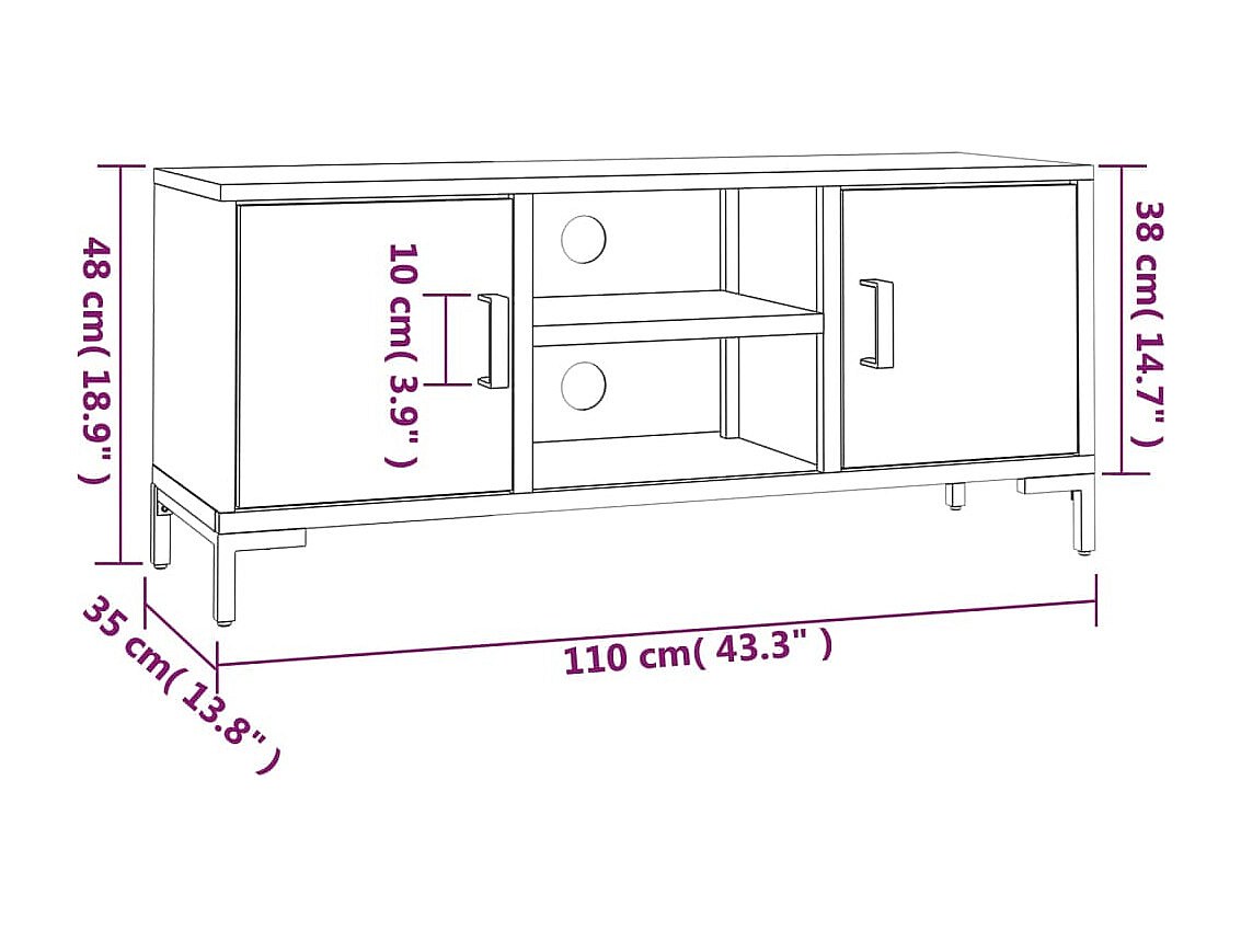 Renata Luz Tv-meubel 110x35x48 cm massief grenenhout bruin