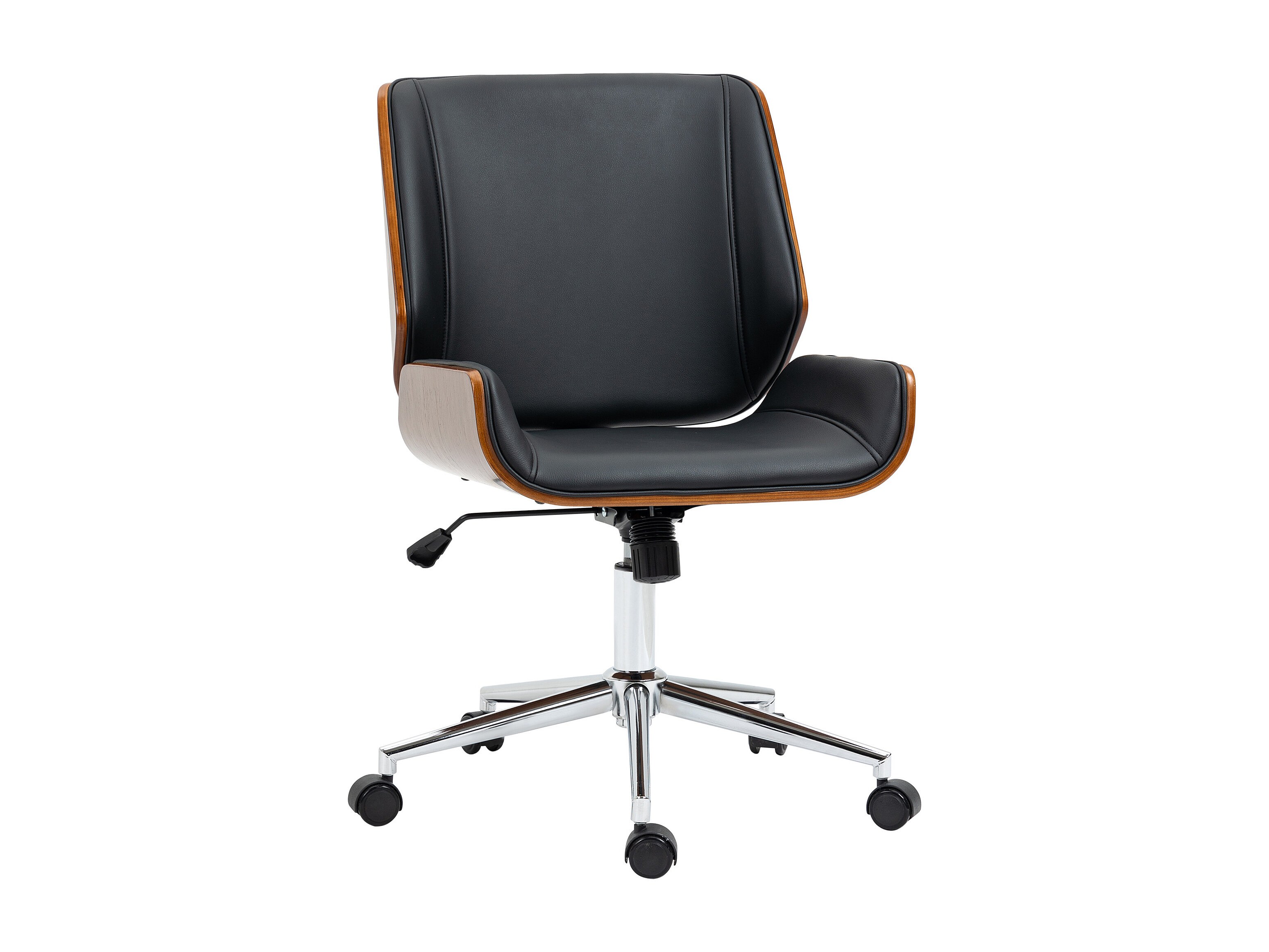 Retro bureaustoel, in hoogte verstelbare houten bureaustoel, draaibaar met schommelfunctie, elegant design, zwart