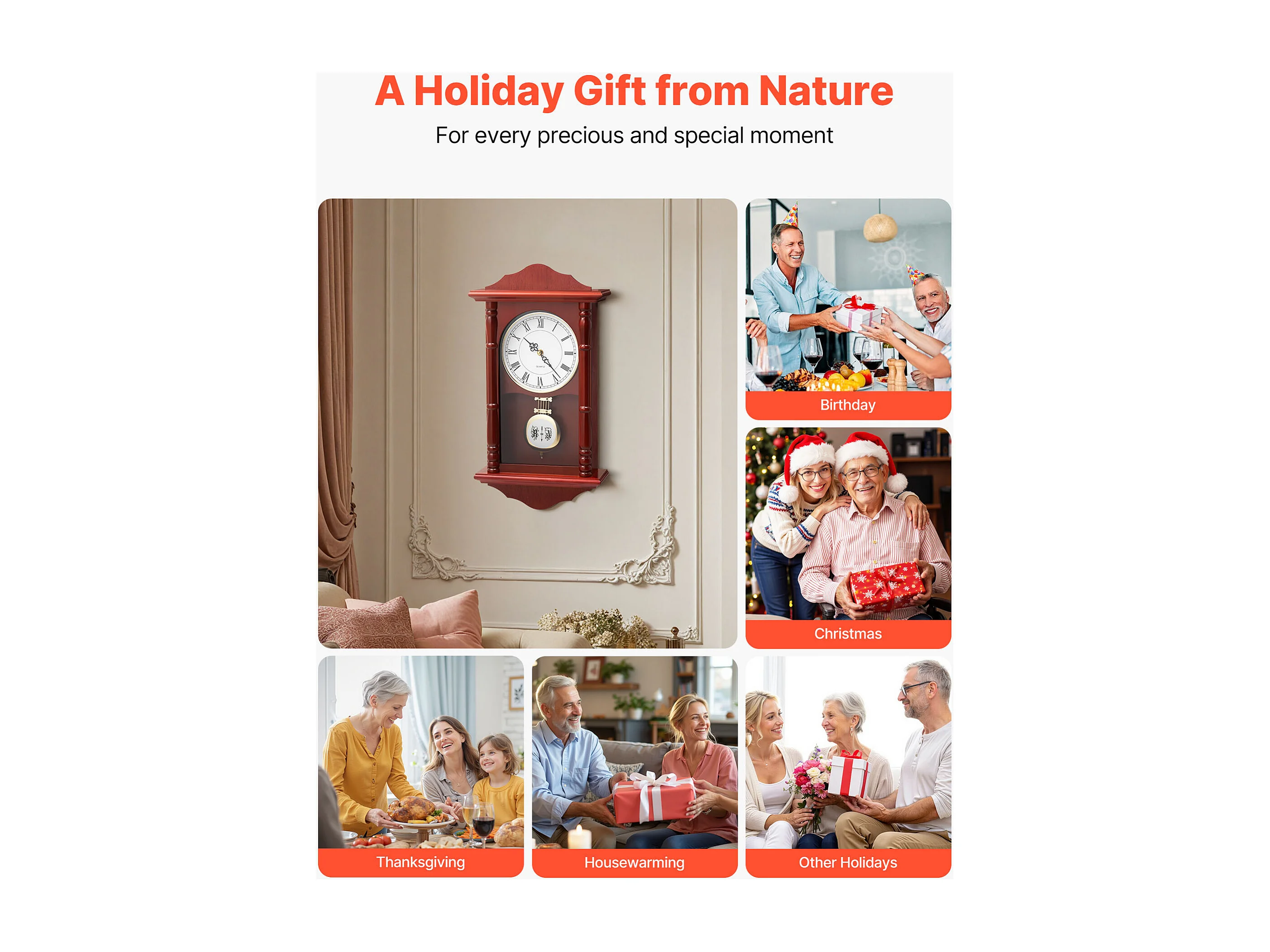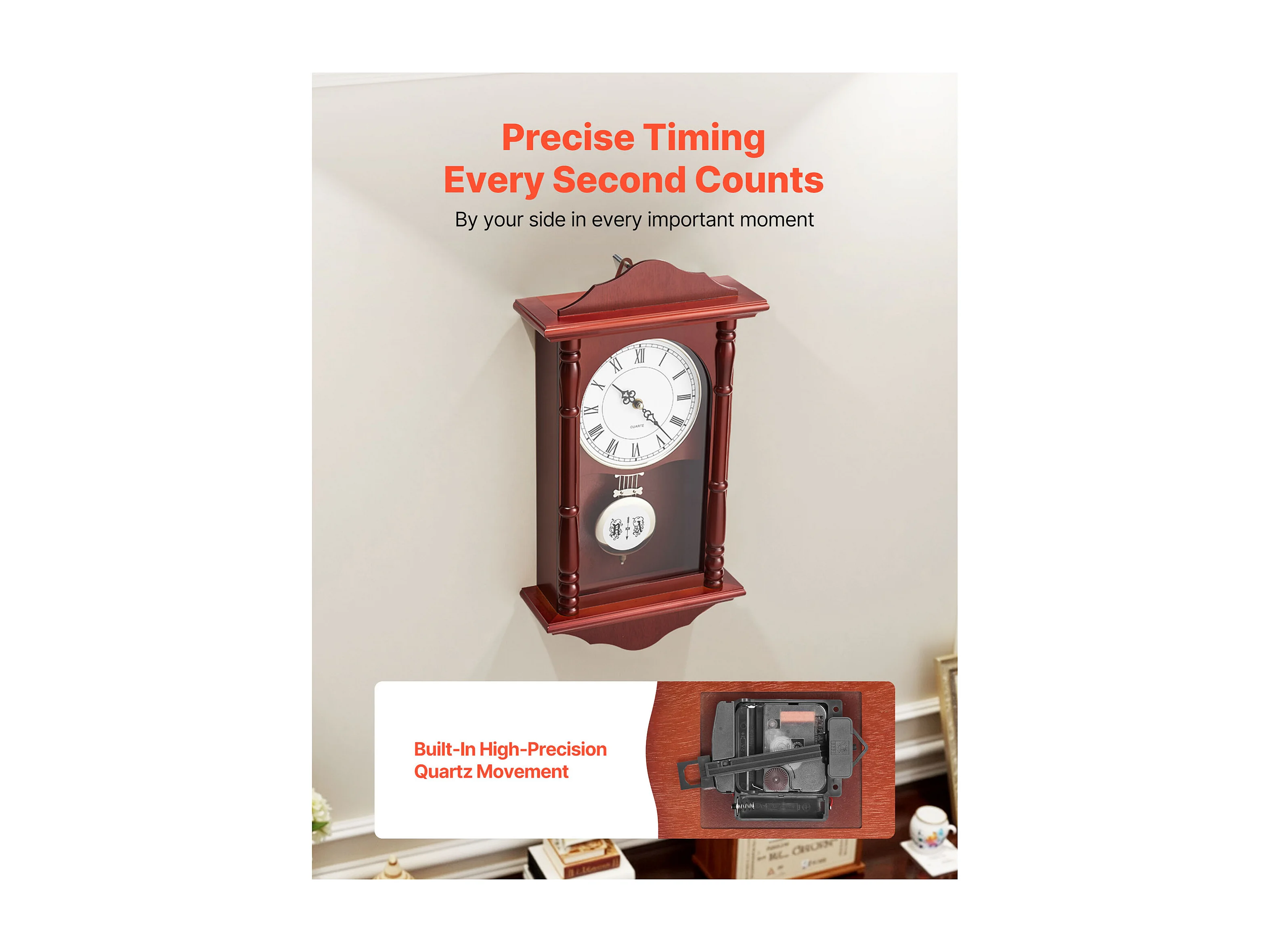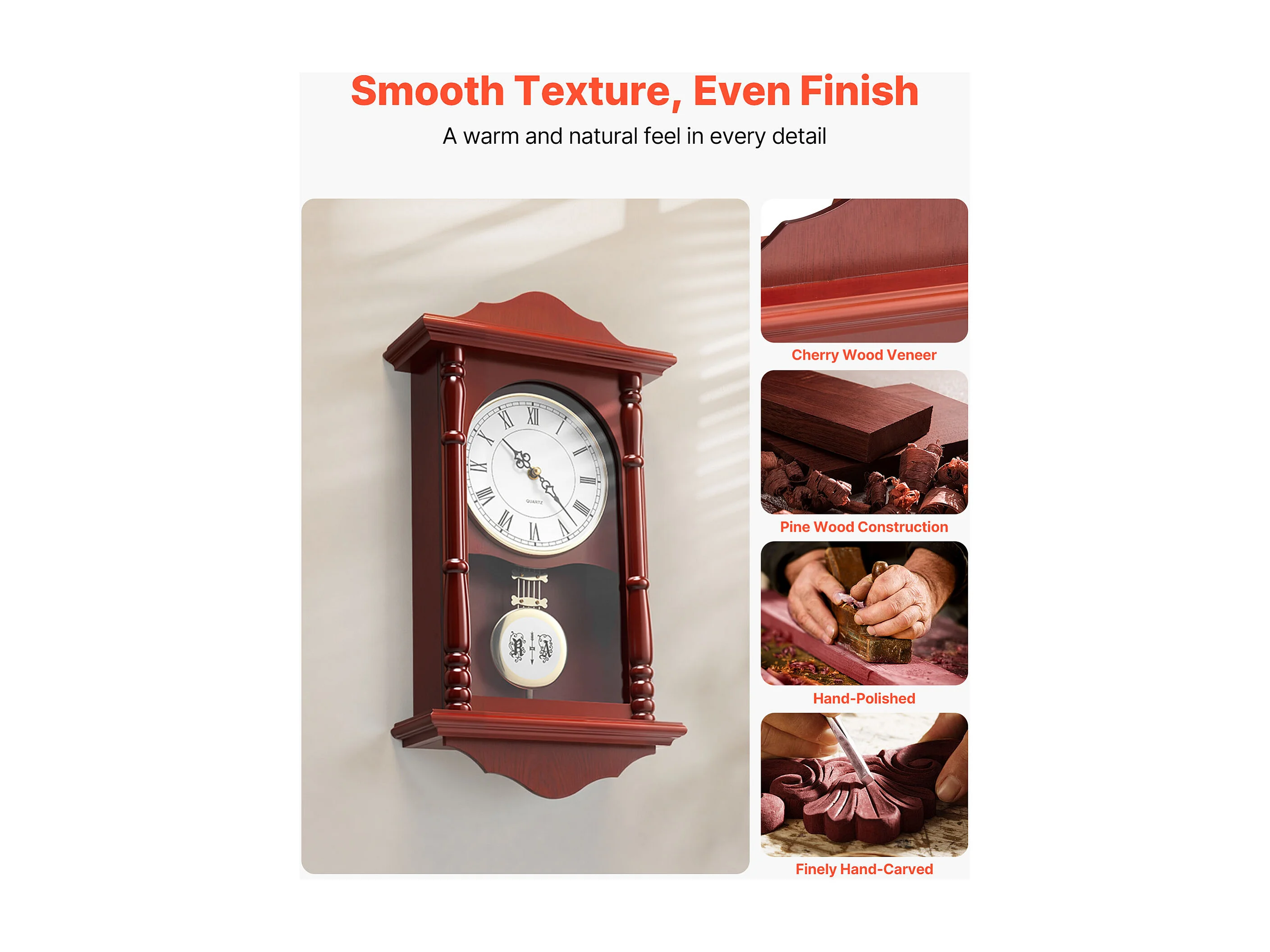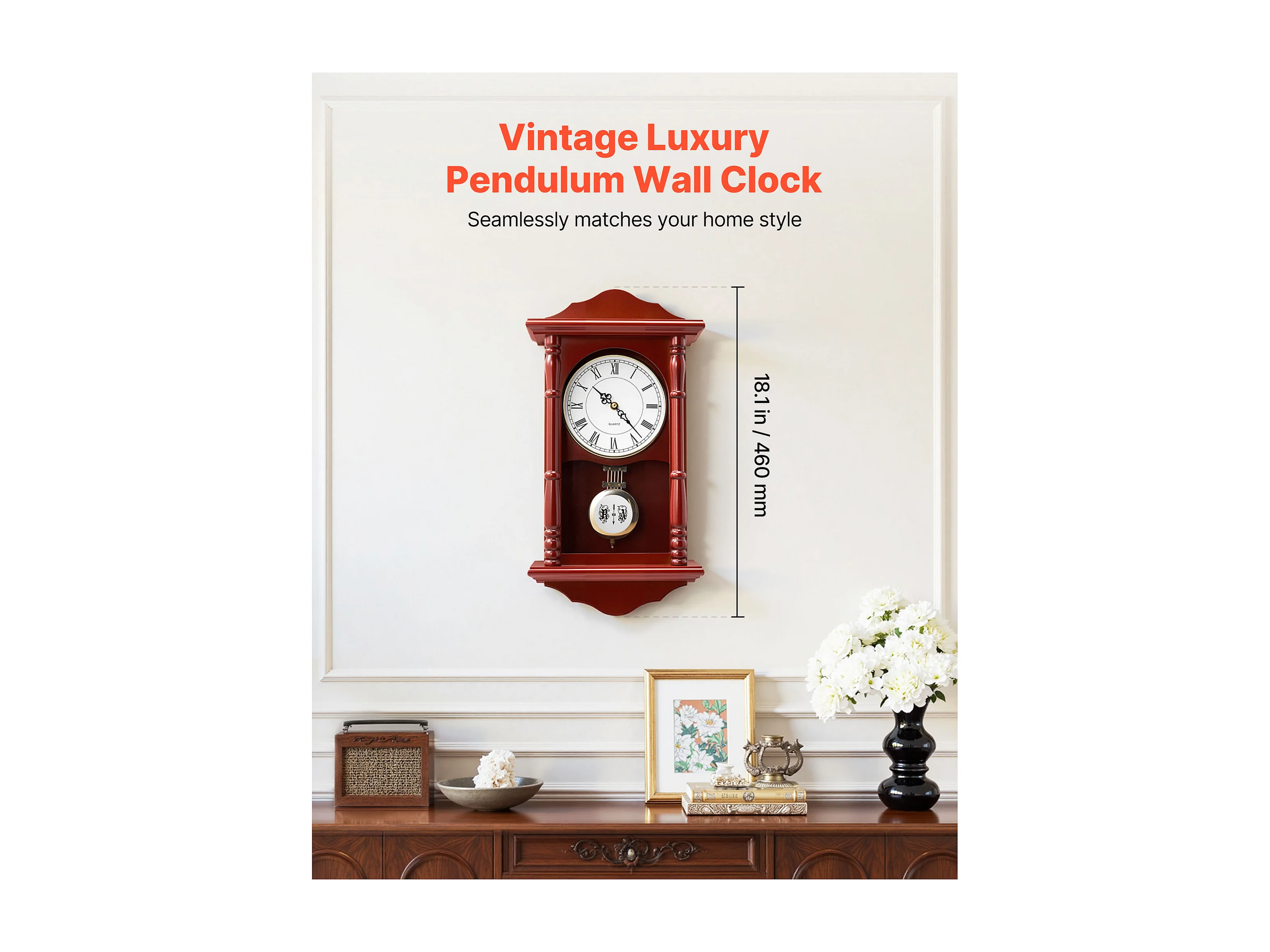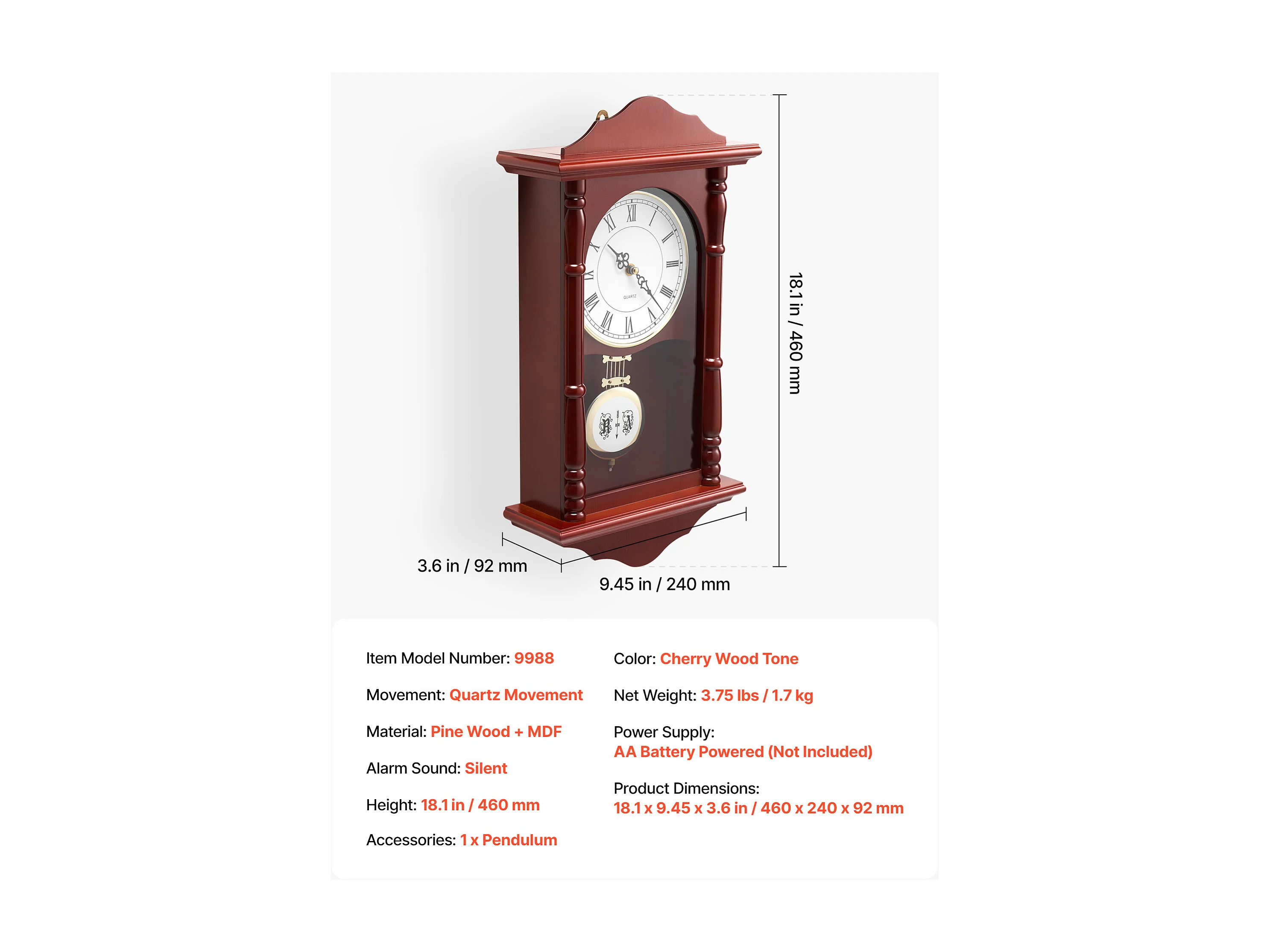 Retro Wandklok met Slinger SucceBuy, 46 cm, Vintage Klassieke Slingerklok Grenen Hout MDF, Geïntegreerde Quartz Beweging, Stil Ontwerp, voor Woonkamer