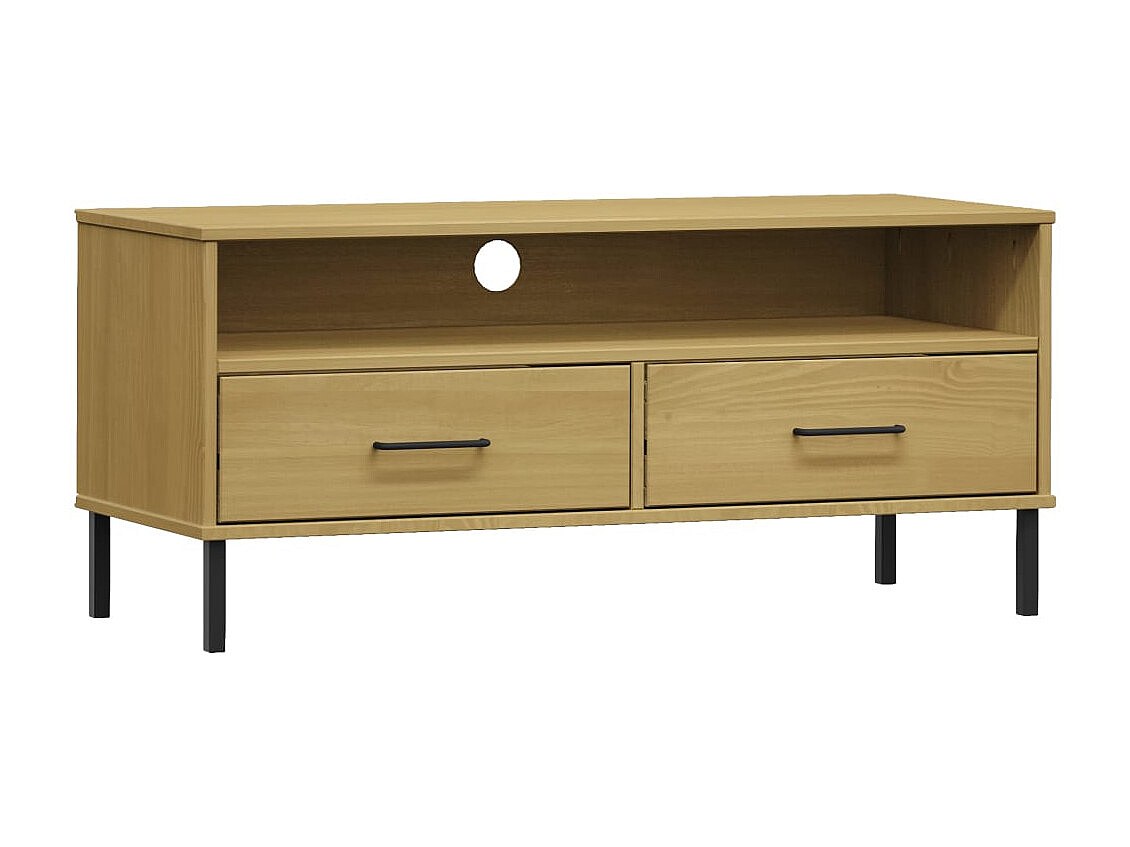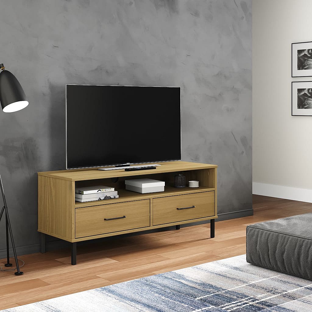 Rilynna Tv-meubel met metalen poten OSLO massief grenenhout bruin