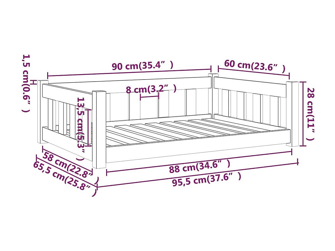 Rinara Hondenmand 105,5x75,5x28 cm massief grenenhout wit
