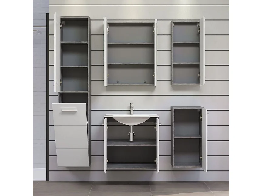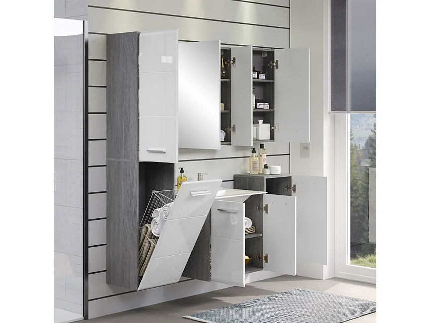 Hangkolom 1 deur glanzend wit en donkergrijs Touka 35 cm