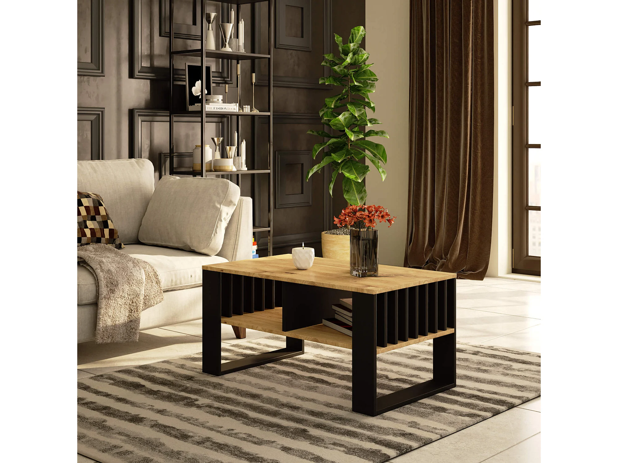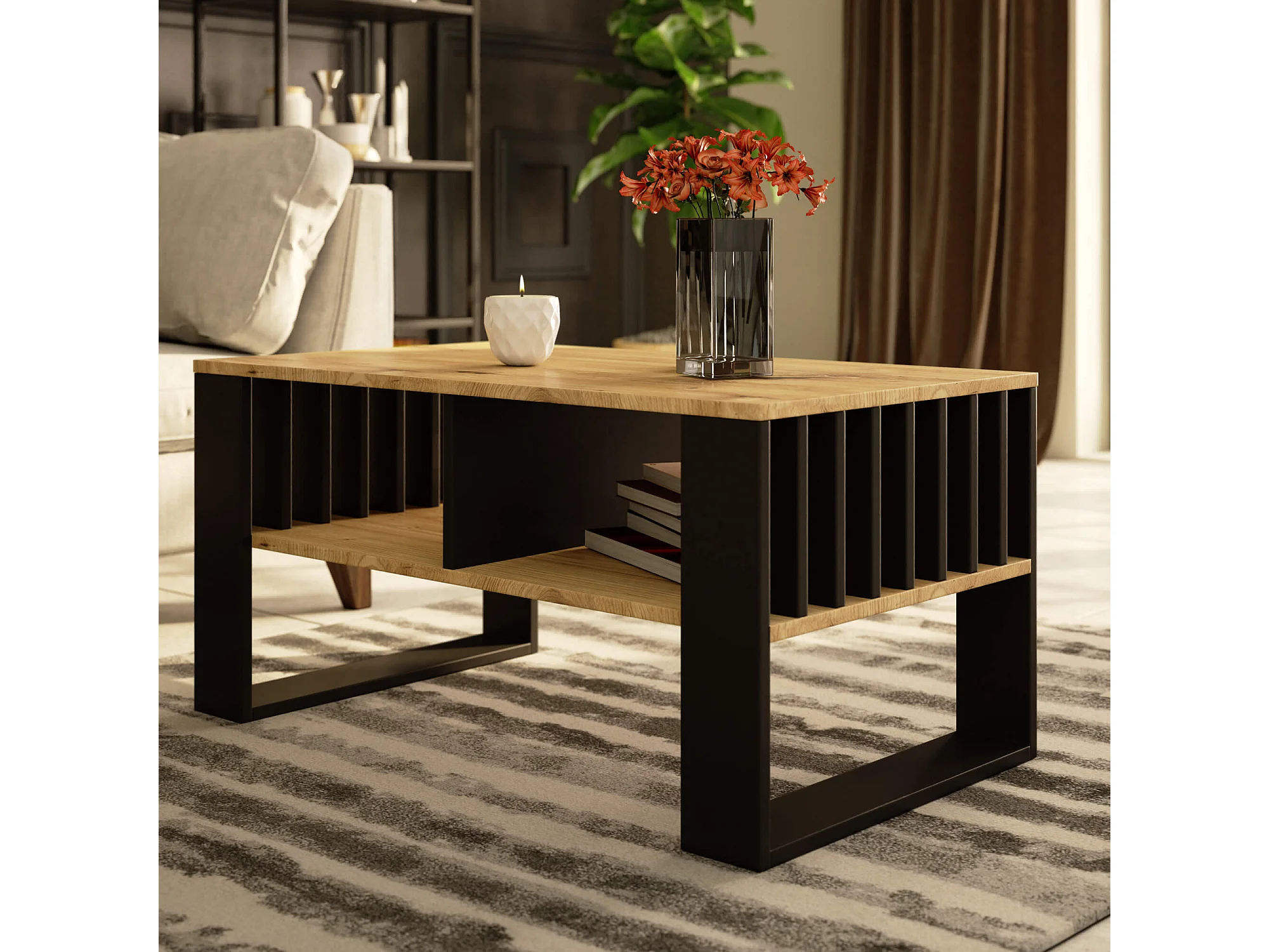 Salontafel Koffietafel ROCKFORD / Artisan Eik - Zwart / 92x45x53 cm