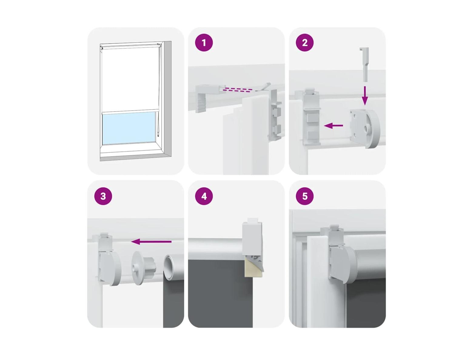 • Meerdere montagemethoden: U kunt het rolgordijn aan de muur of het raam bevestigen met schroeven of zonder te boren met behulp van klembeugels, afhankelijk van uw behoeften. Klembeugels voor kozijnsponningdiktes tussen 1,6 en 2,2 cm.