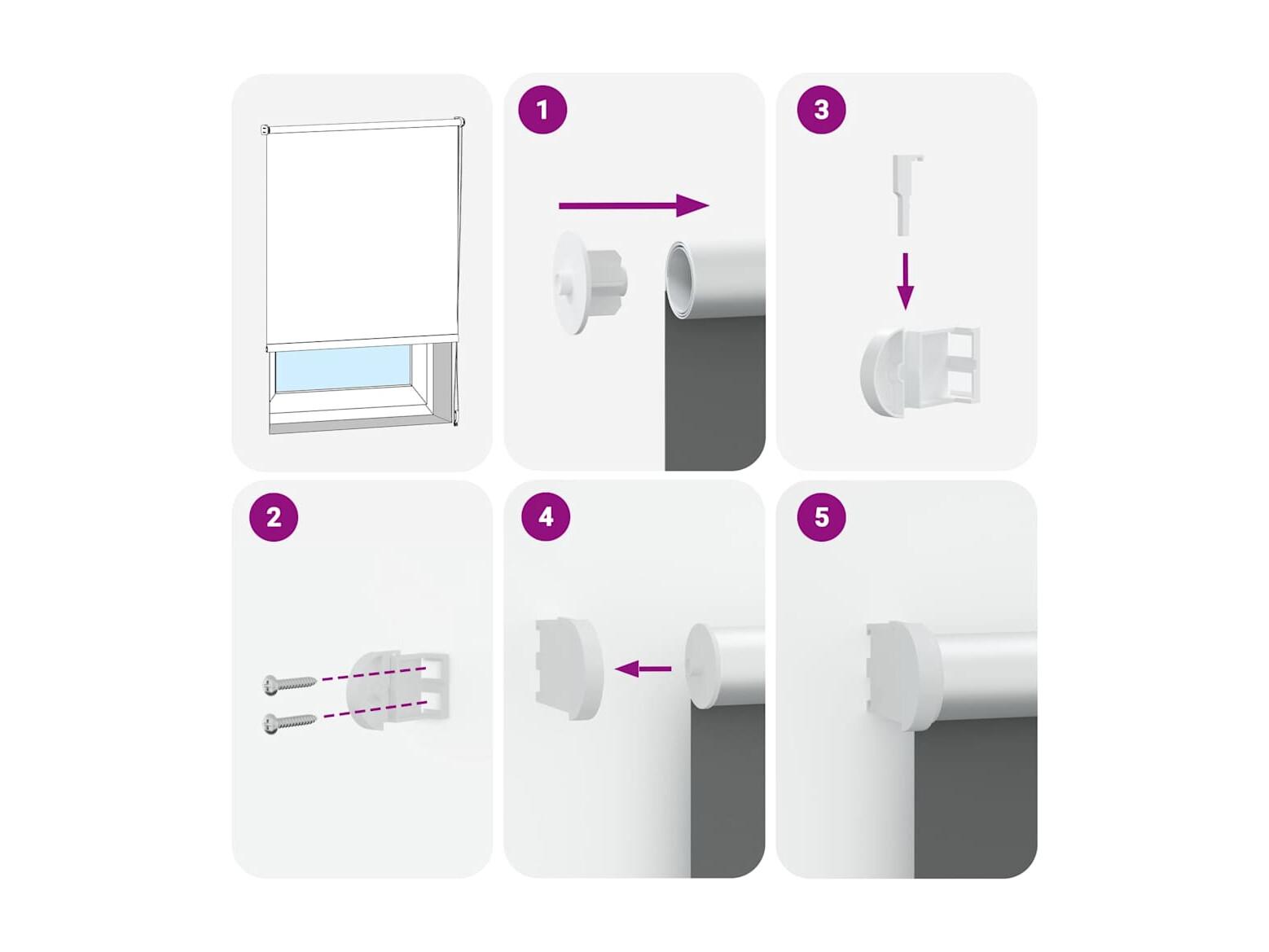 • Meerdere montagemethoden: U kunt het rolgordijn aan de muur of het raam bevestigen met schroeven of zonder te boren met behulp van klembeugels, afhankelijk van uw behoeften. Klembeugels voor kozijnsponningdiktes tussen 1,6 en 2,2 cm.