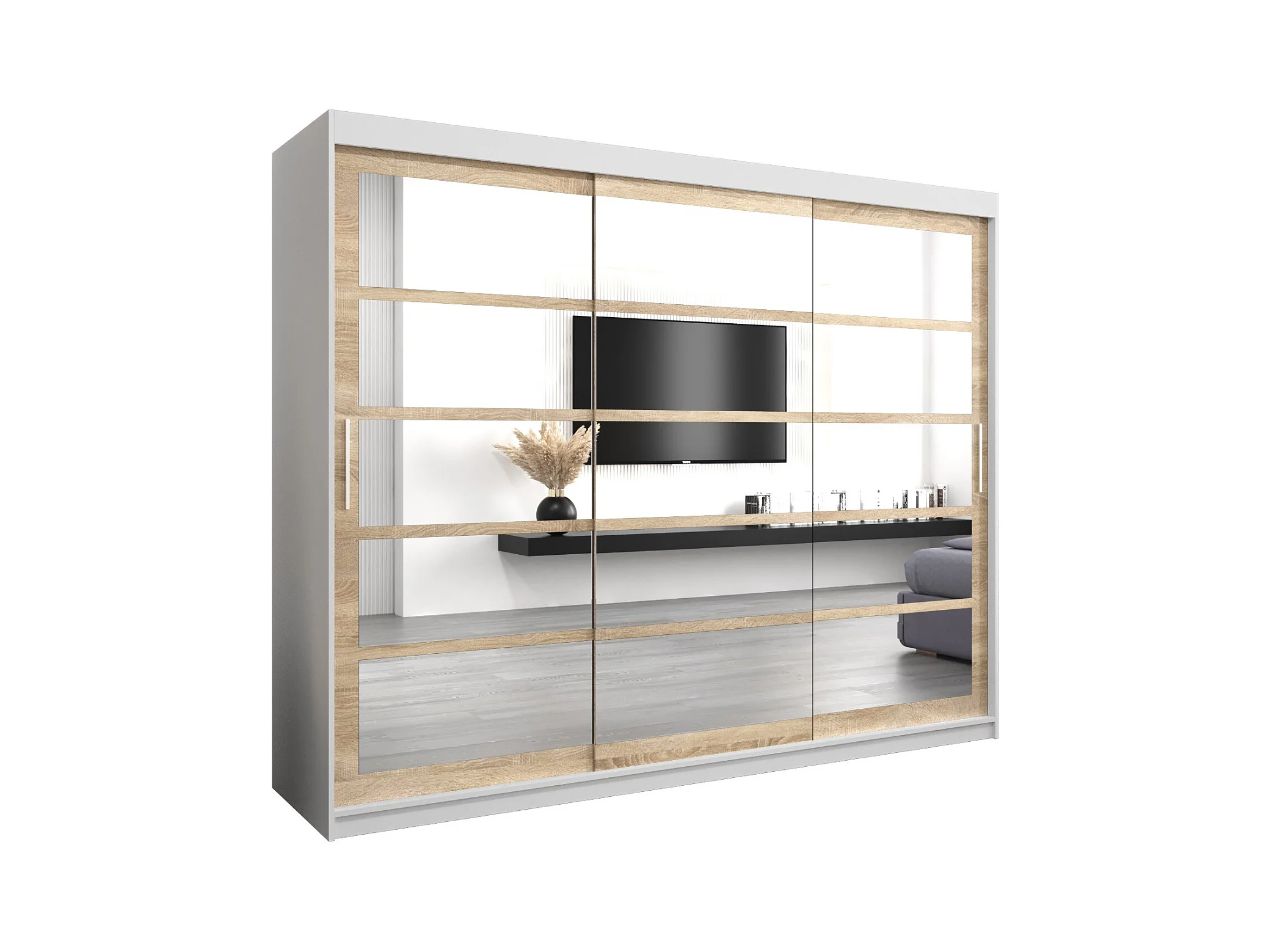 Pole kledingkast met schuifdeuren 200/250/62 3 deuren (wit/sonoma)