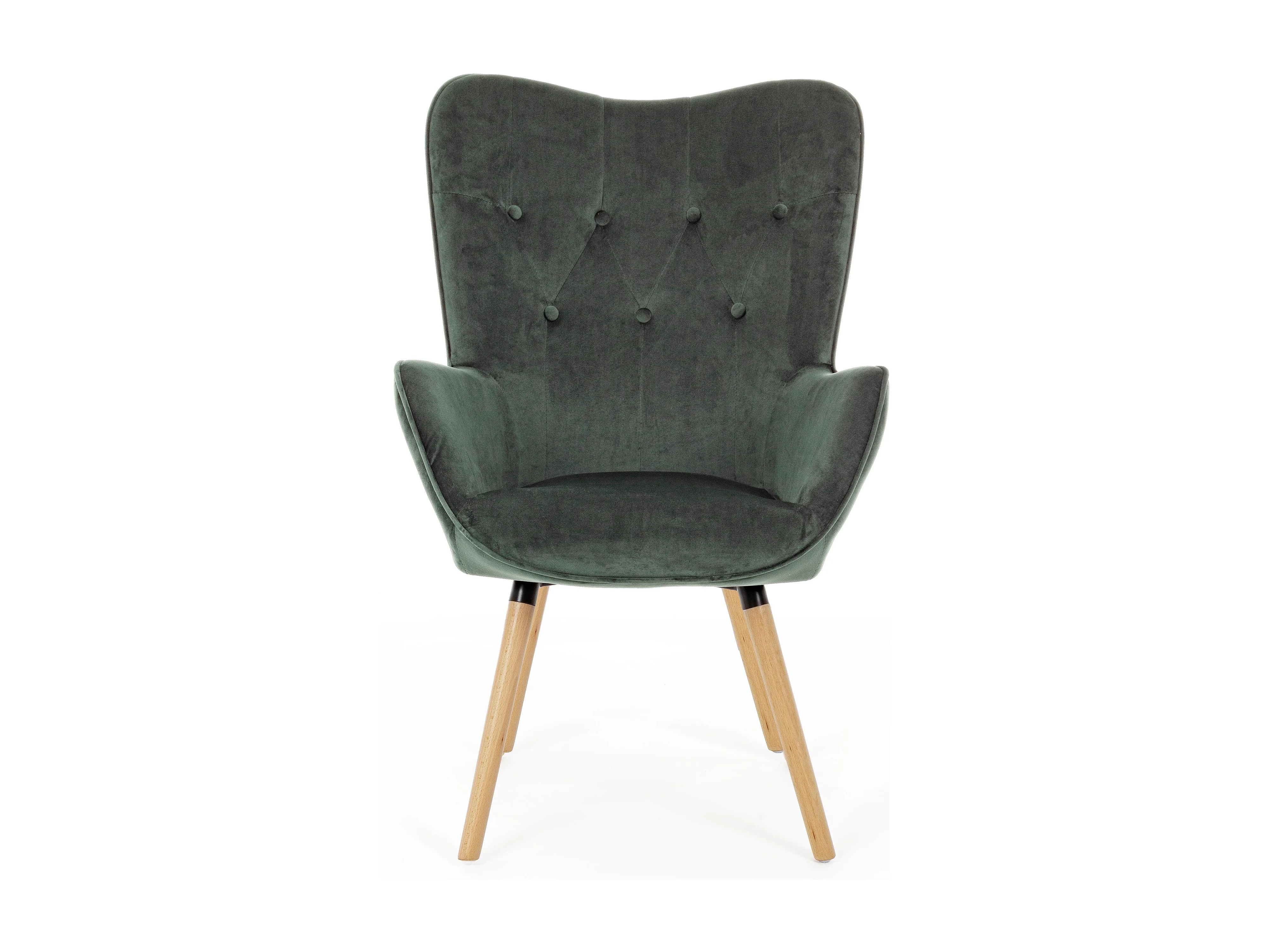 Roméo groene fluwelen fauteuil en houten poten