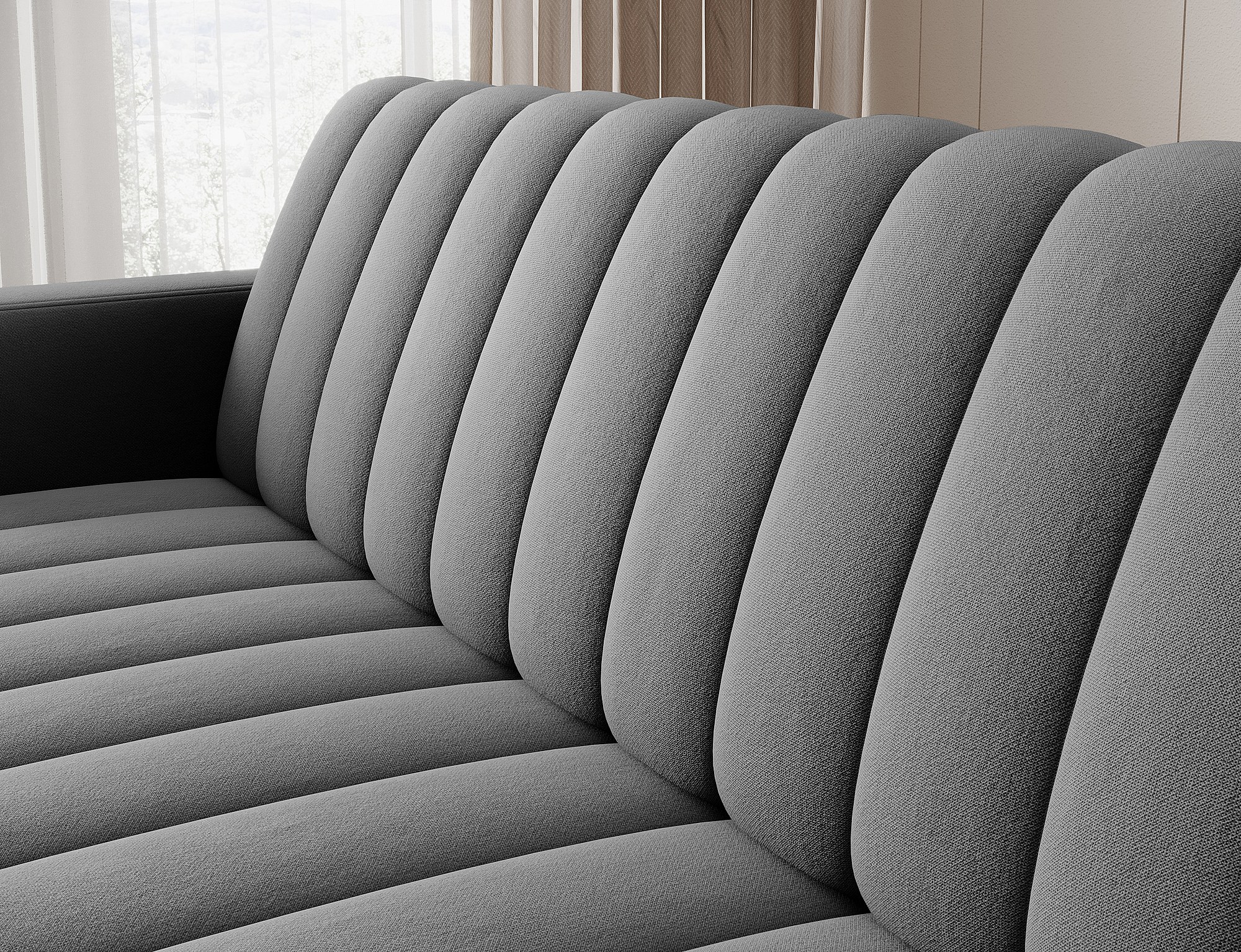 Omkeerbare bank van lichtgrijze geweven stof, 3 zitplaatsen