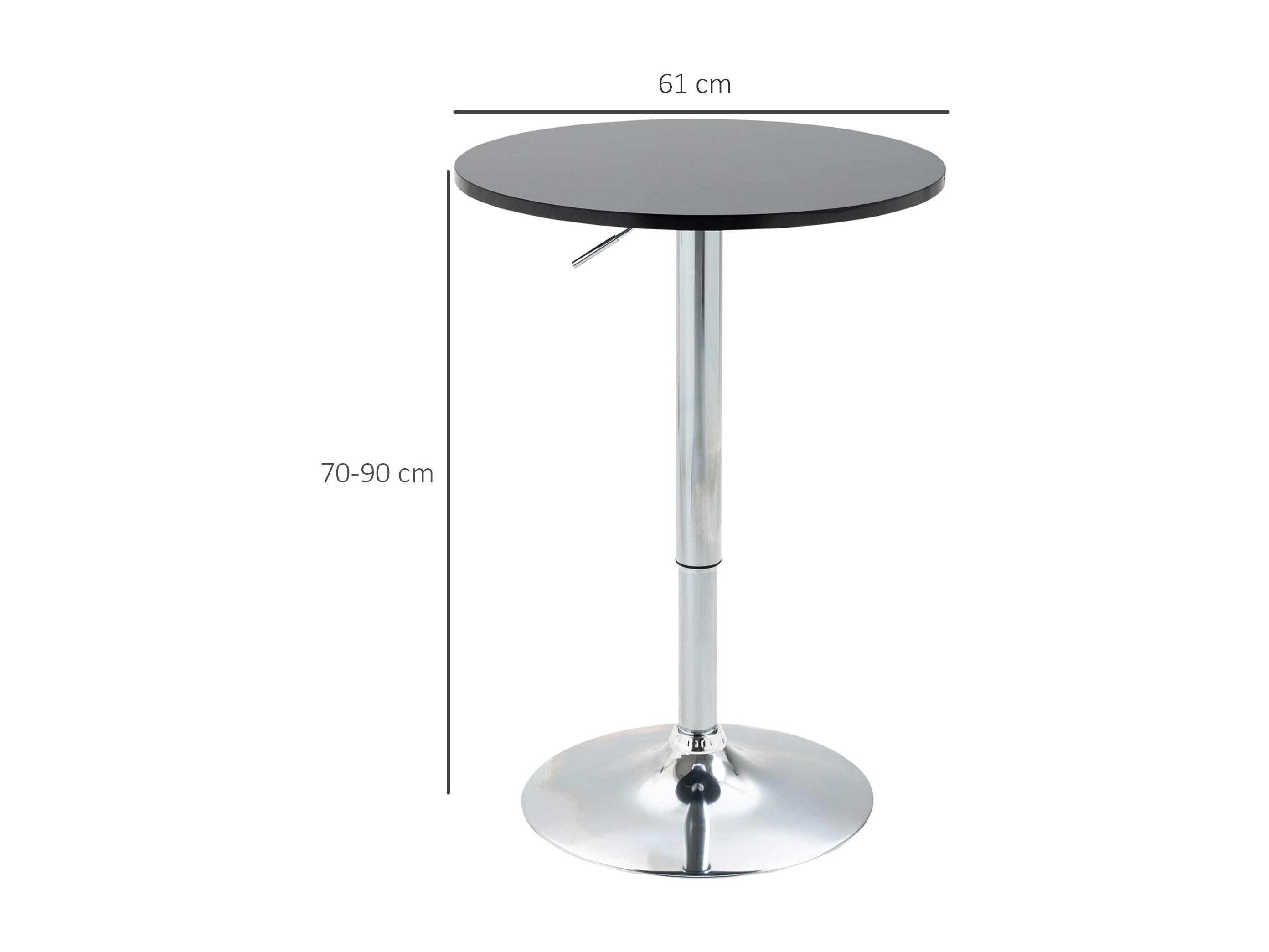 Ronde bartafel in hoogte verstelbaar, draaibaar blad, MDF, zwart metaal (61x61x70-90cm)