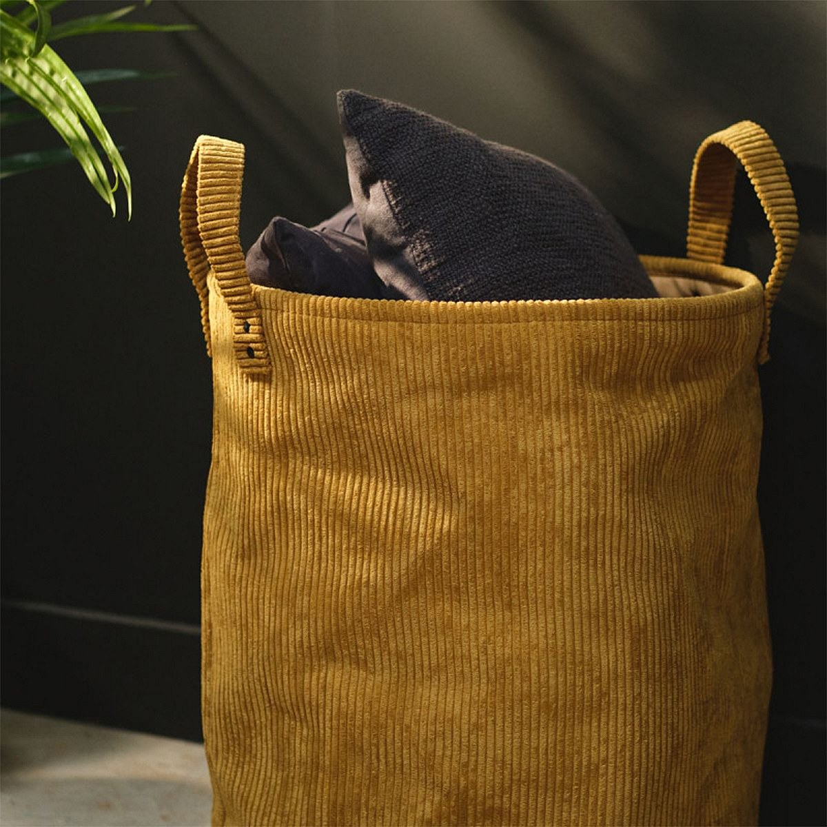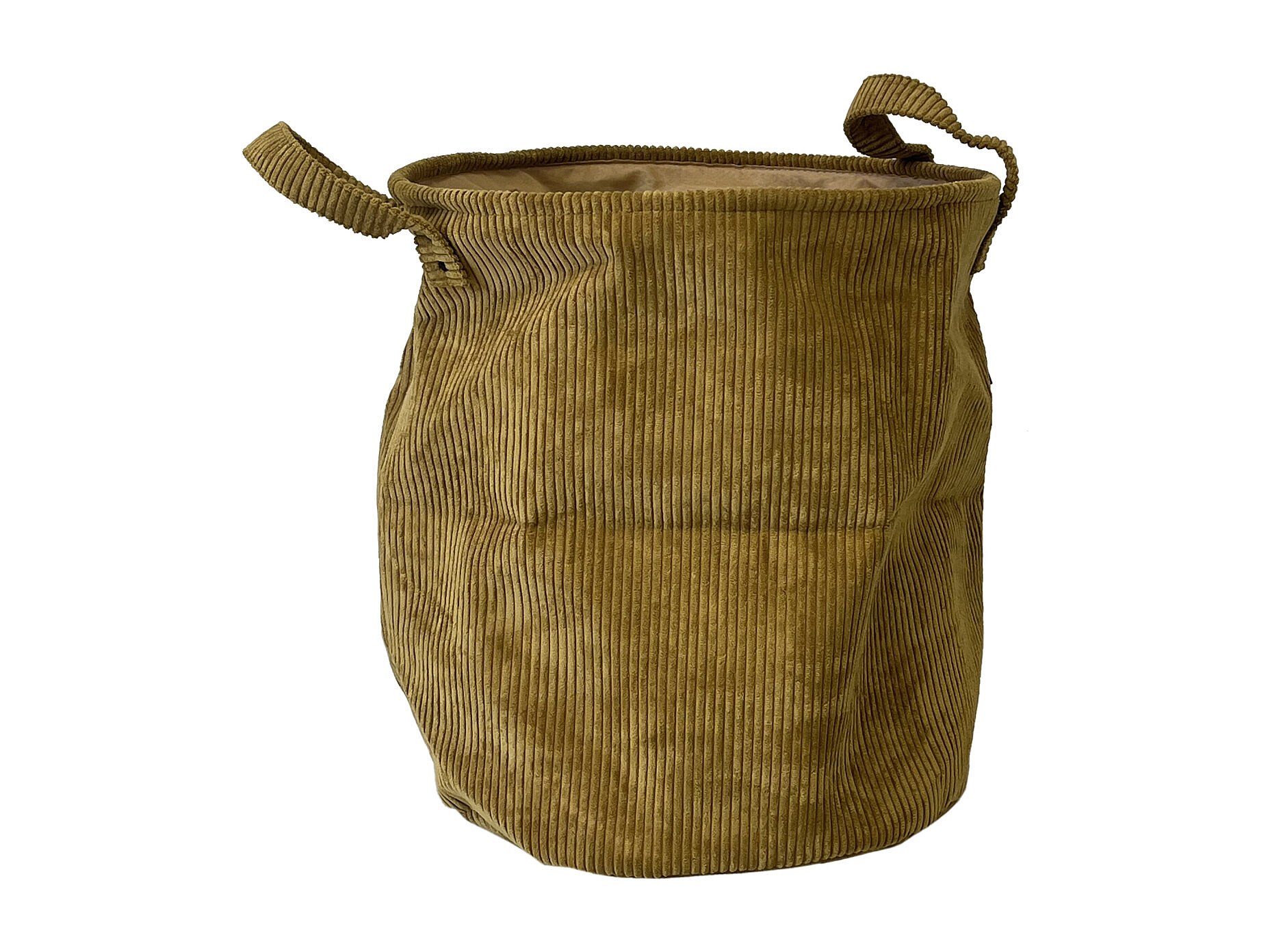 Ronde corduroy mand met twee handgrepen aan de zijkant. Brons 40x45cm