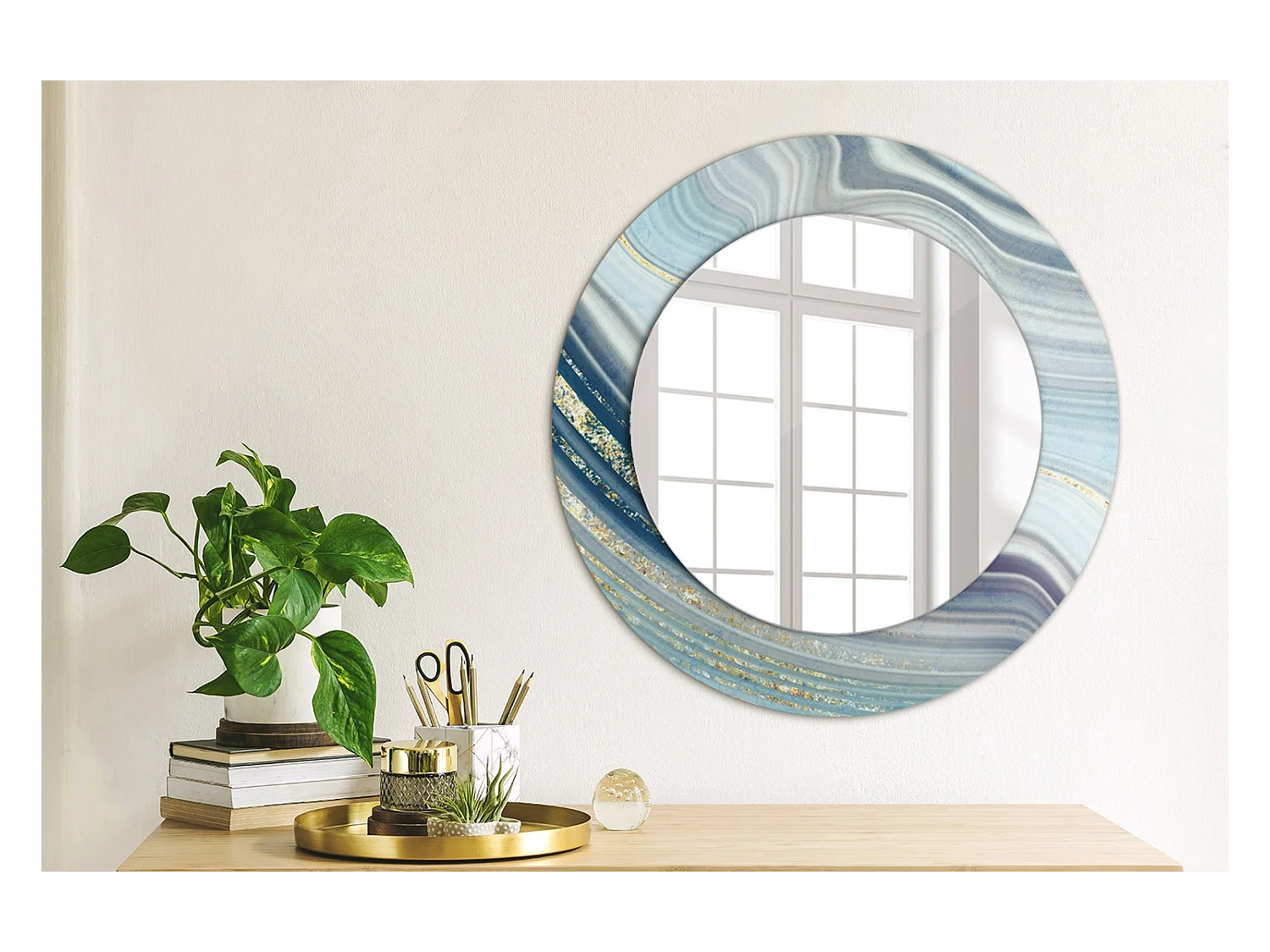 Ronde decoratieve spiegel - Blauw Marmer - 50 cm