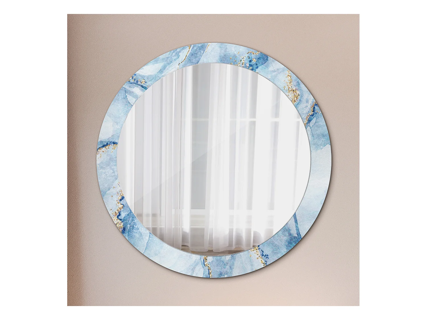 Ronde decoratieve spiegel - Blauw Marmer - 80 cm