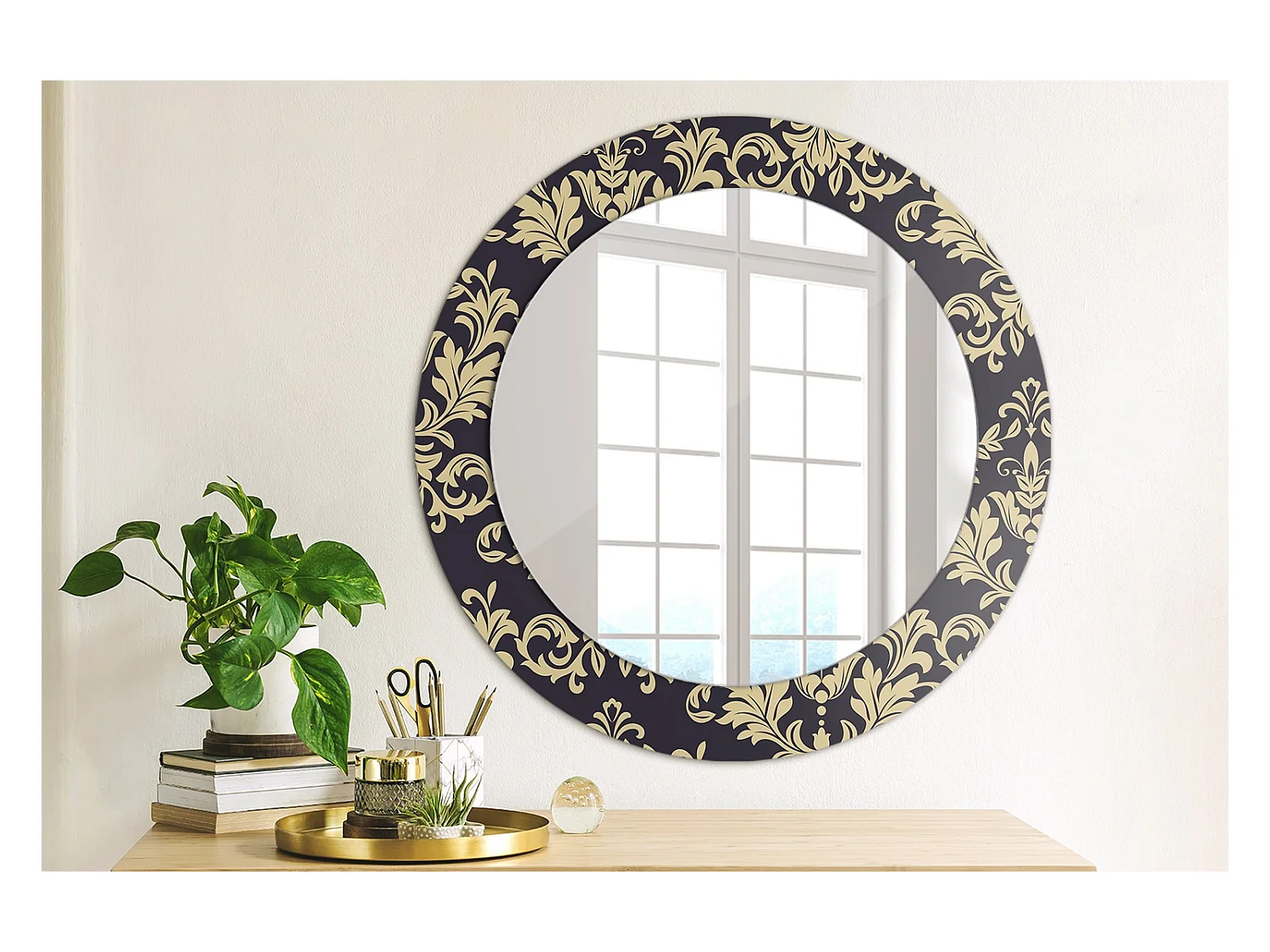 Ronde decoratieve spiegel - bloemenprint - 60 cm