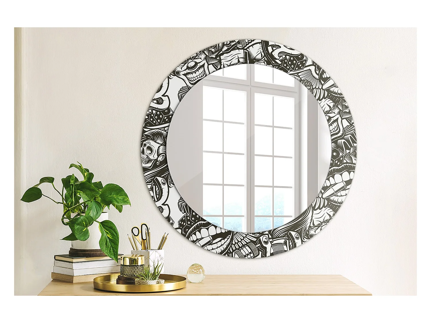 Ronde decoratieve spiegel - clown graffiti - 60 cm