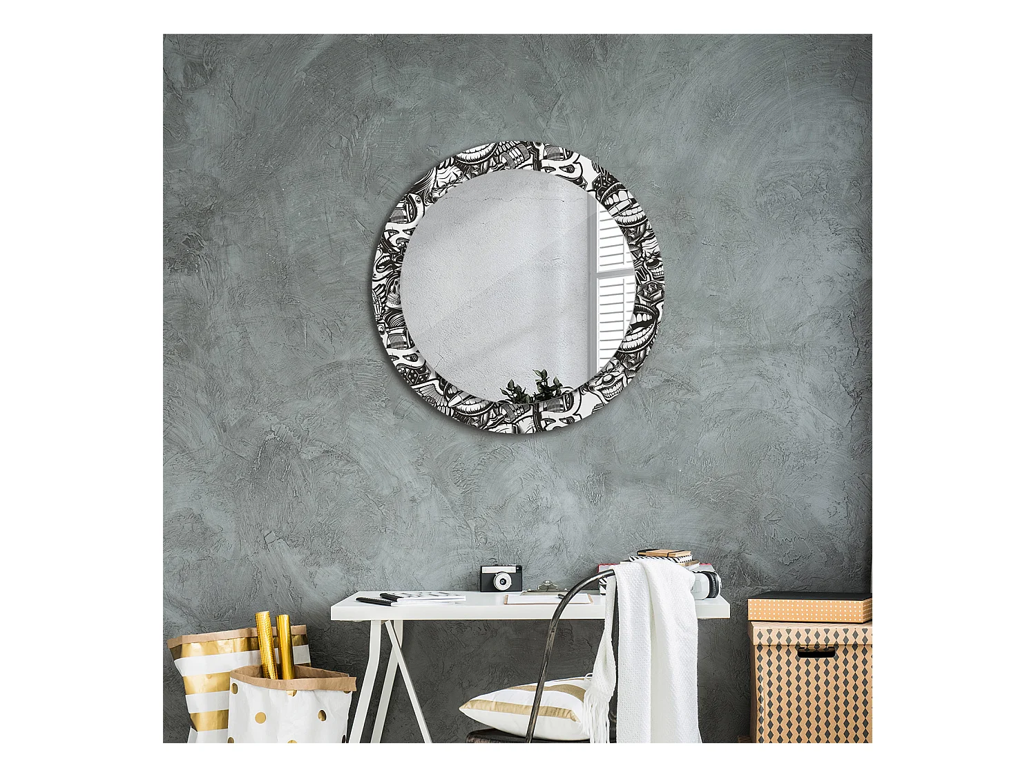 Decoratieve ronde spiegel - Abstracte geometrie - 60 cm