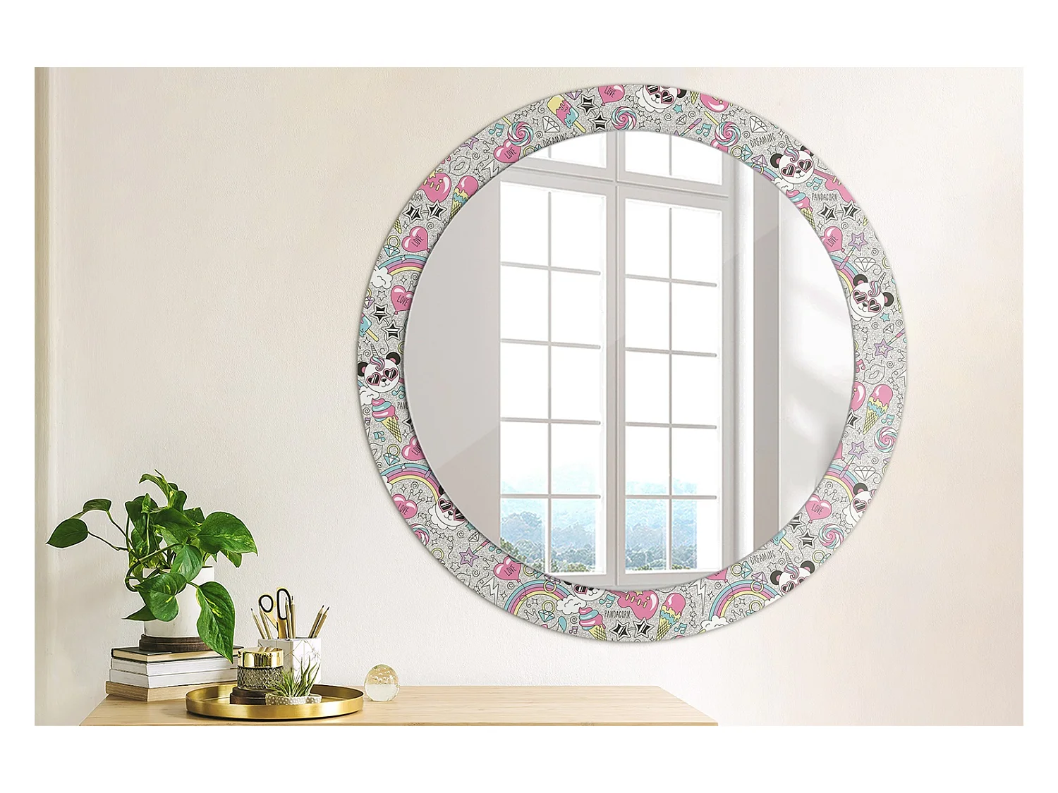 Ronde decoratieve spiegel - Eenhoorn Panda - 80 cm
