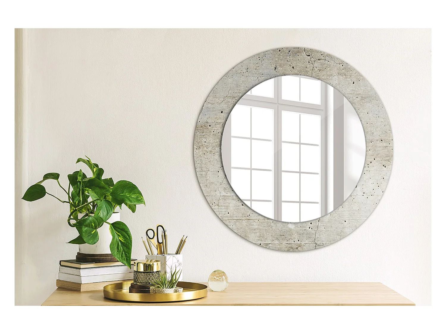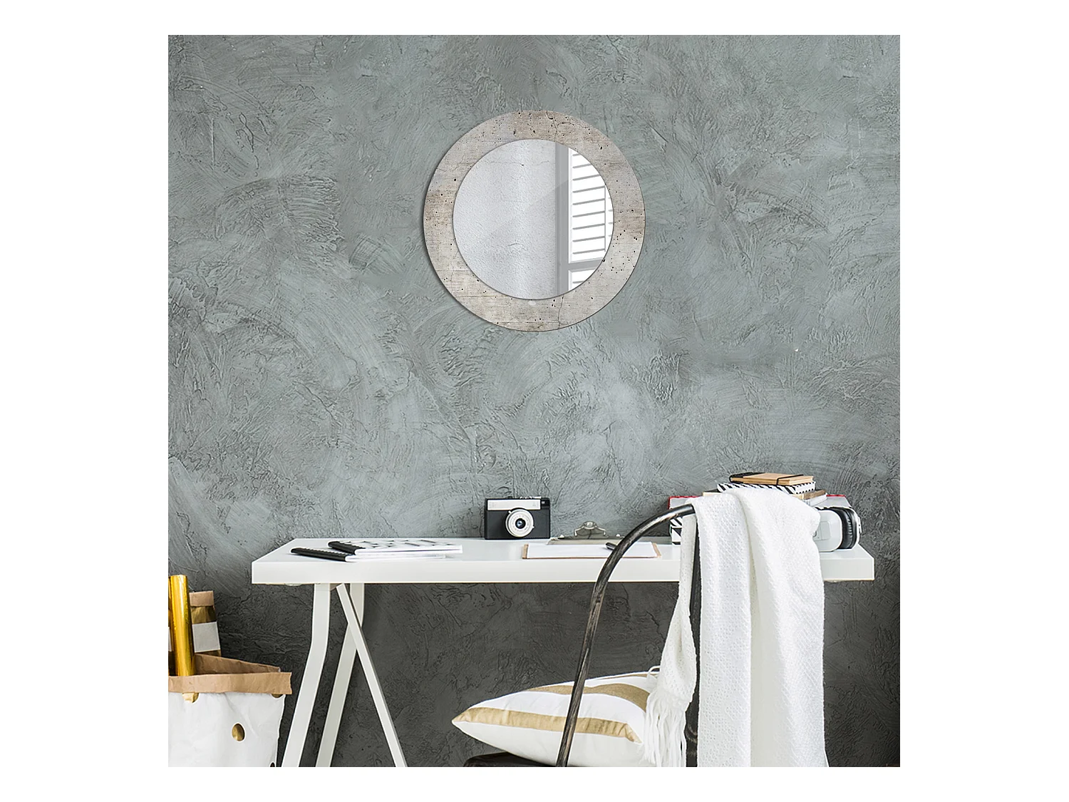 Ronde decoratieve spiegel - Grijs beton - 50 cm