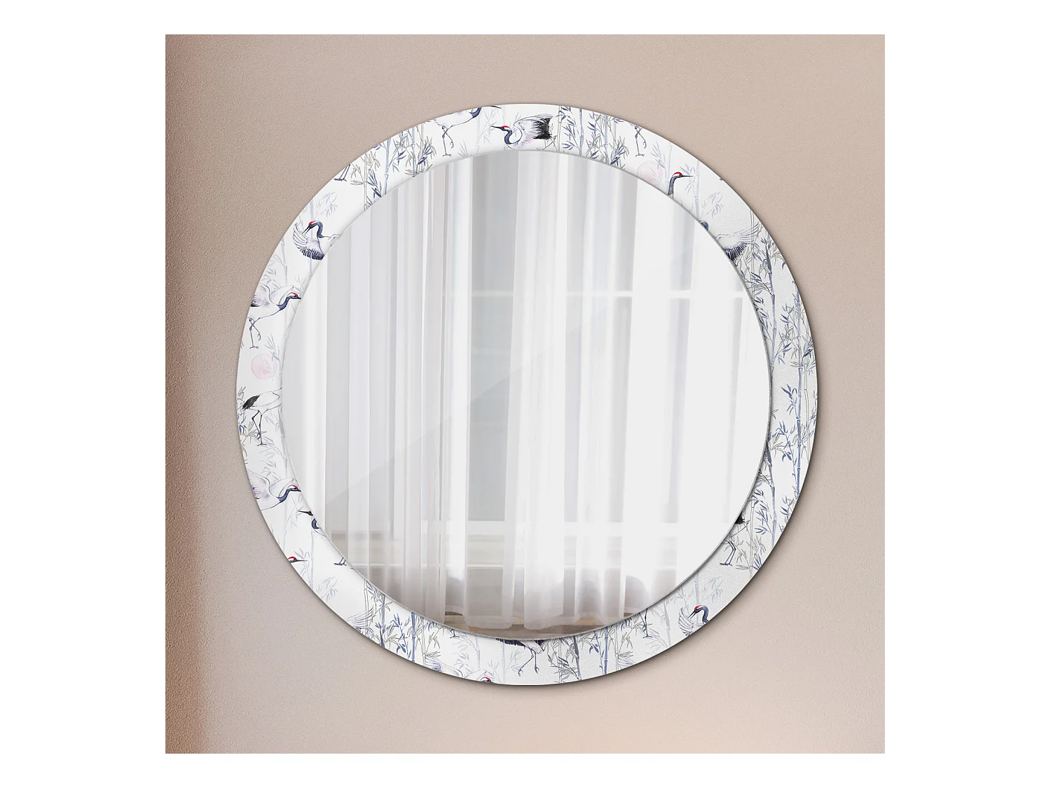 Ronde decoratieve spiegel - Kraanvogels - 90 cm