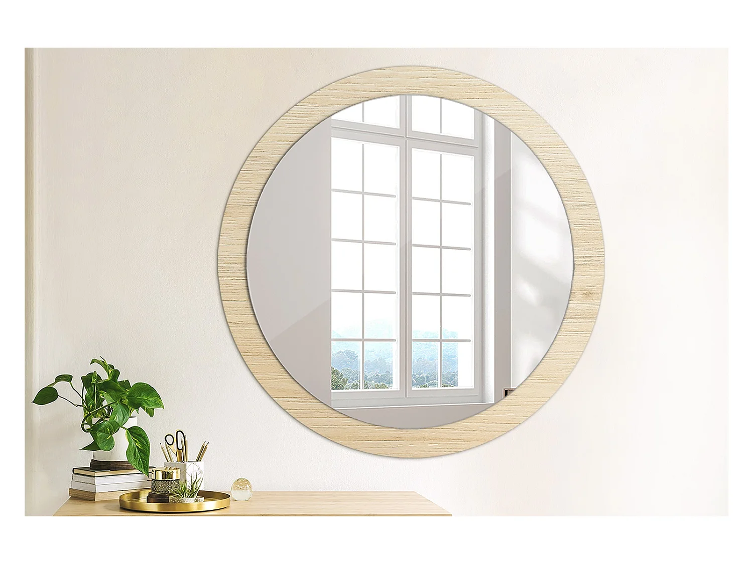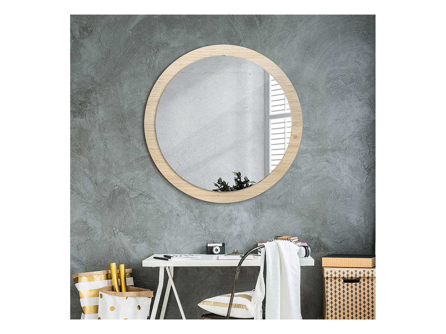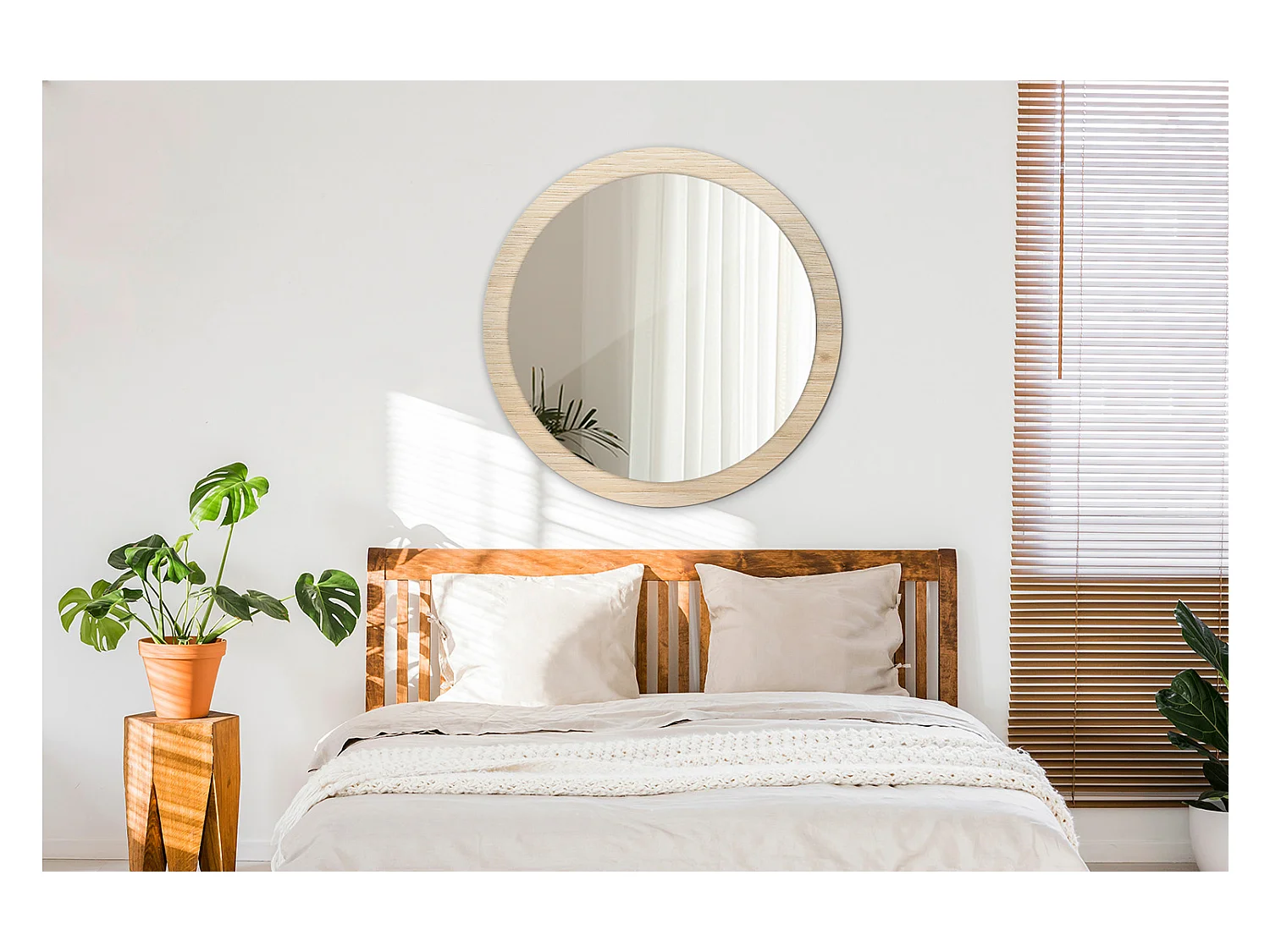 Ronde decoratieve spiegel - Licht hout - 90 cm
