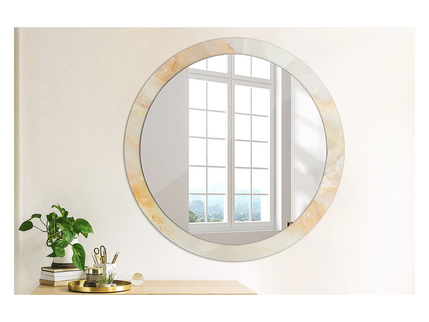 Ronde decoratieve spiegel - Onyx marmer - 90 cm