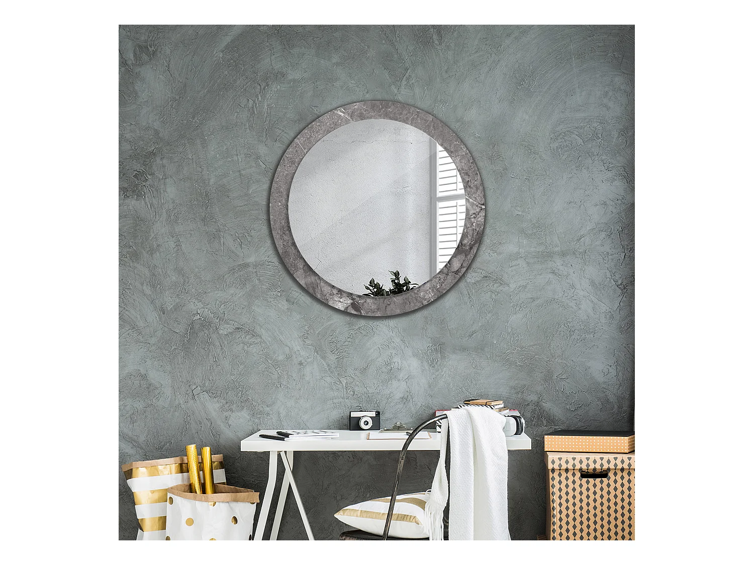Ronde Decoratieve Spiegel – Rustiek Marmer – 80cm