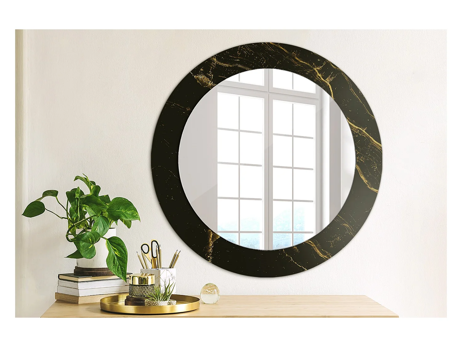 Ronde decoratieve spiegel - Zwart Marmer - 60 cm