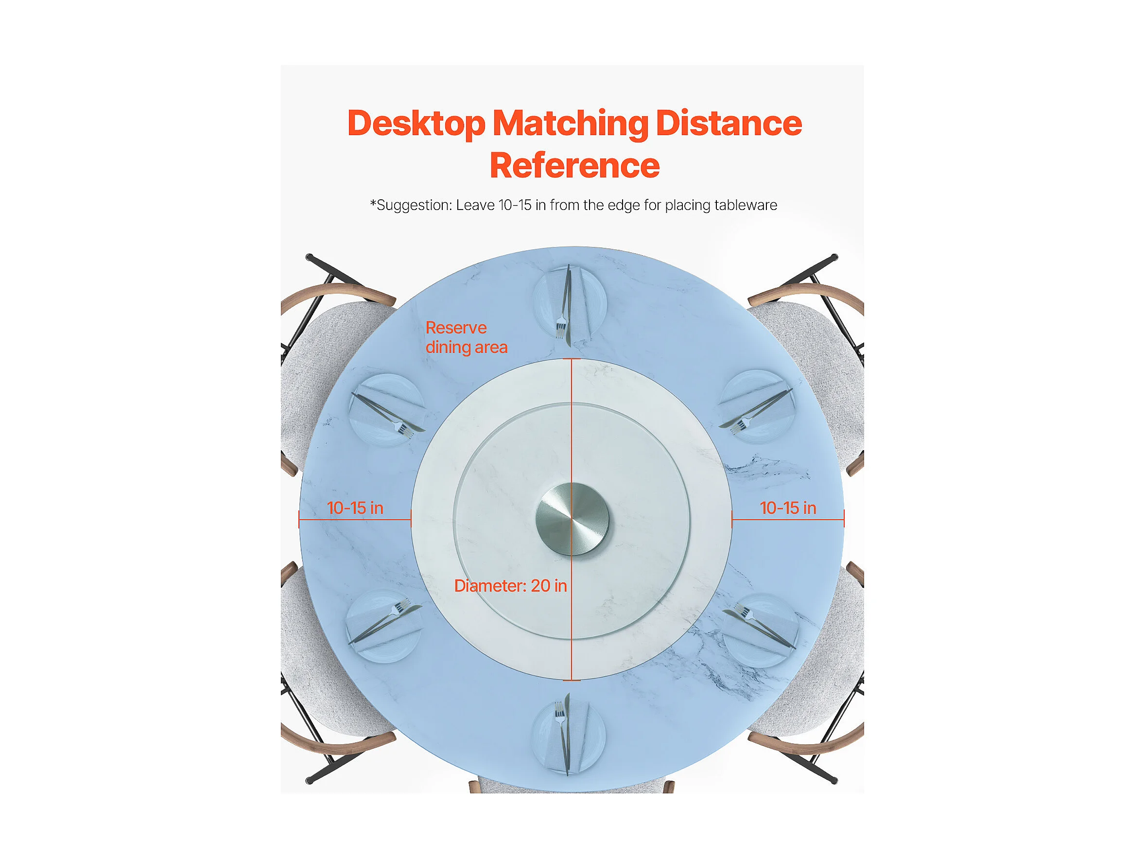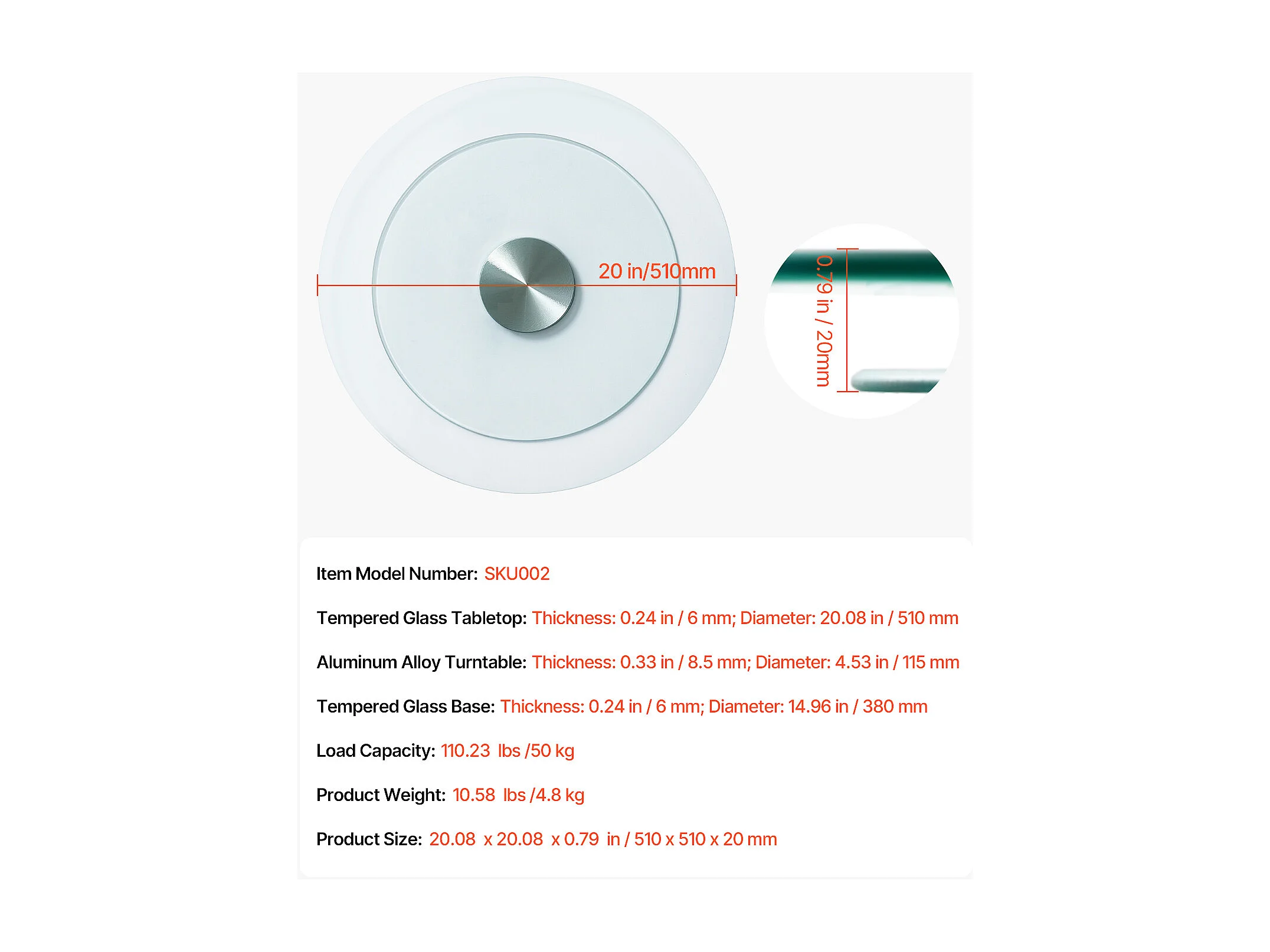 Ronde Draaitafel SucceBuy voor Tafel, 51 cm, 360° Draaibaar Dienblad, Tafelstuk van Transparant Gehard Glas, voor Banketten