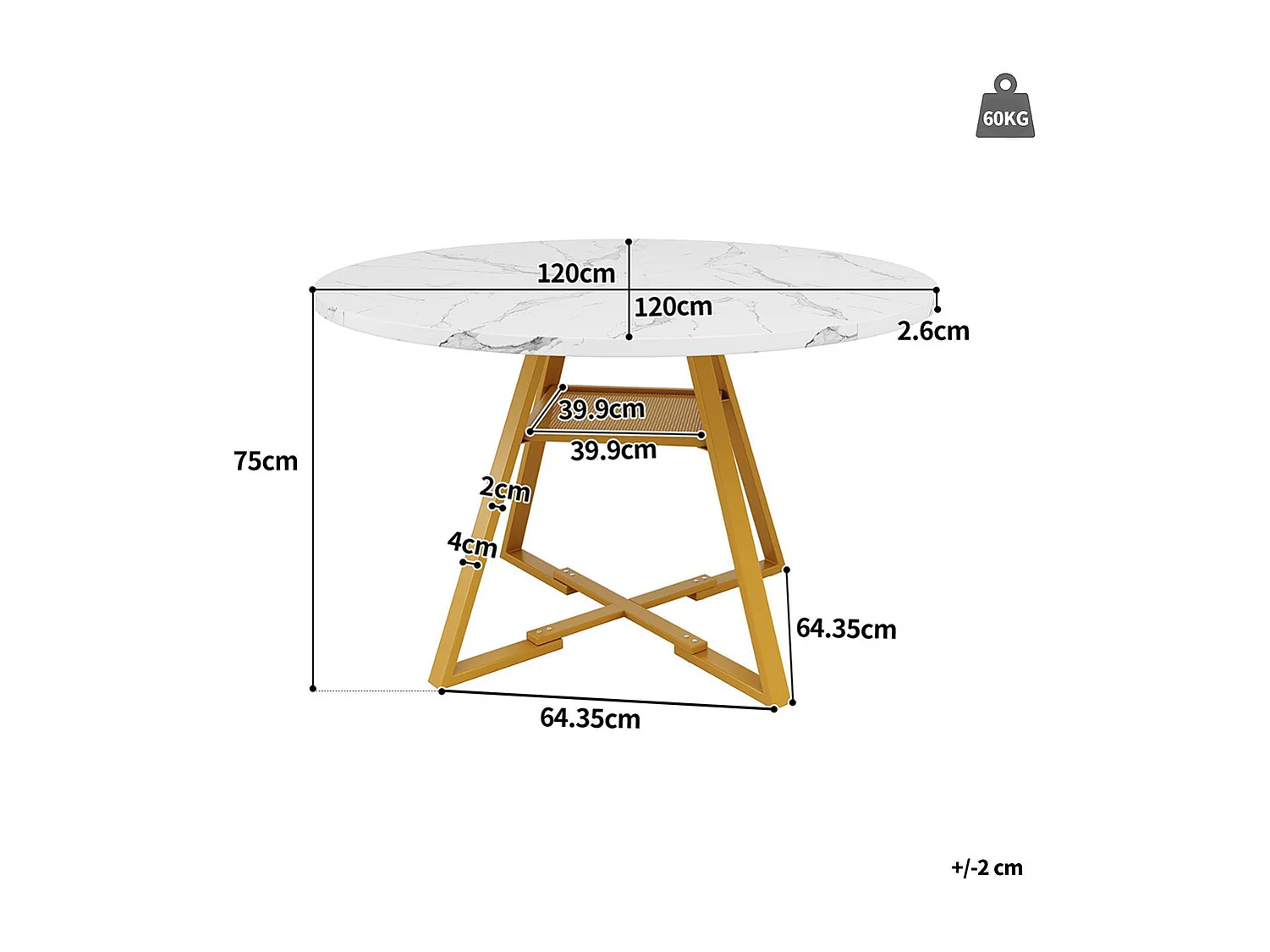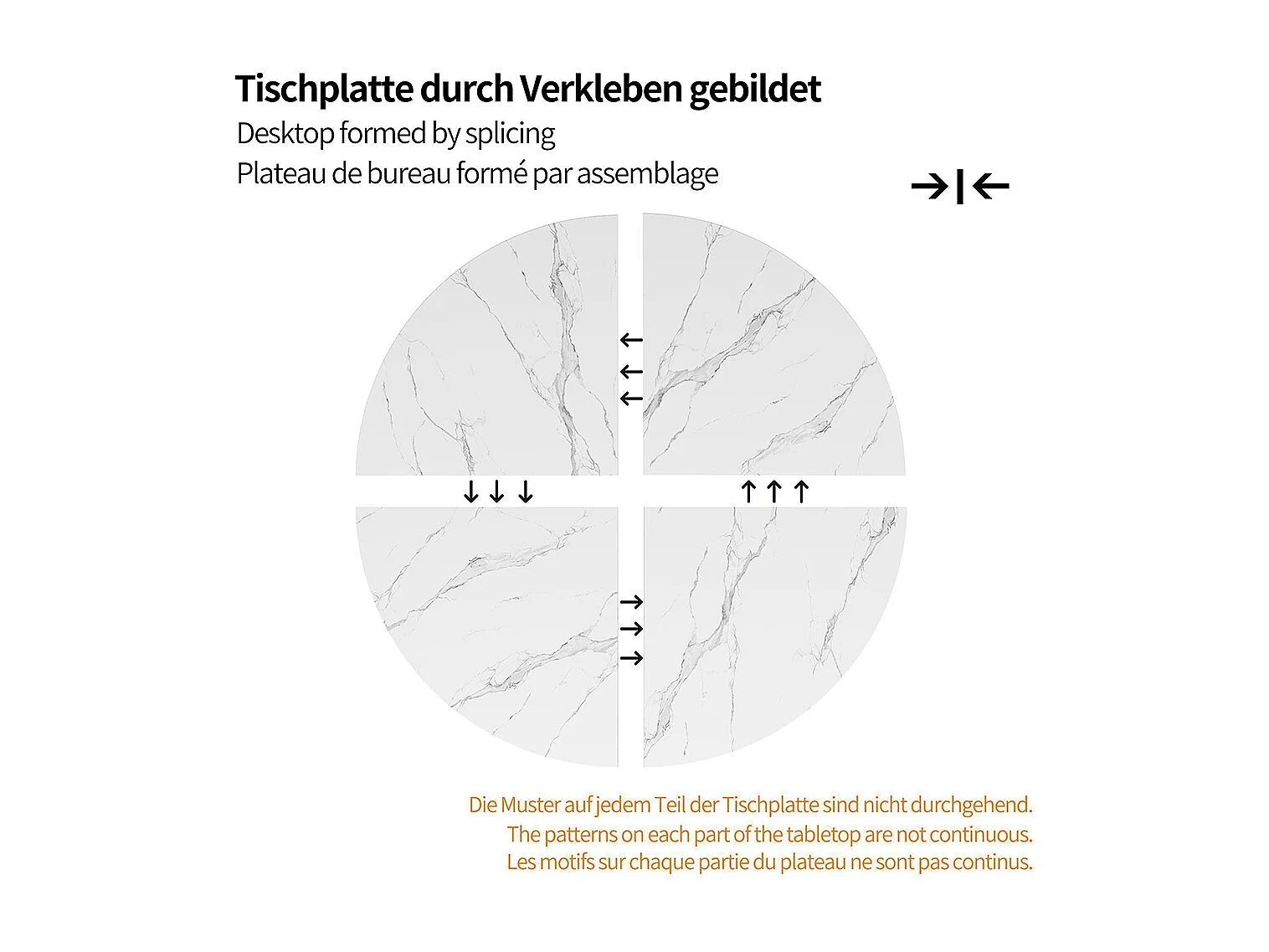Ronde eettafel (1 stuk), metalen poten, marmerlook, wit