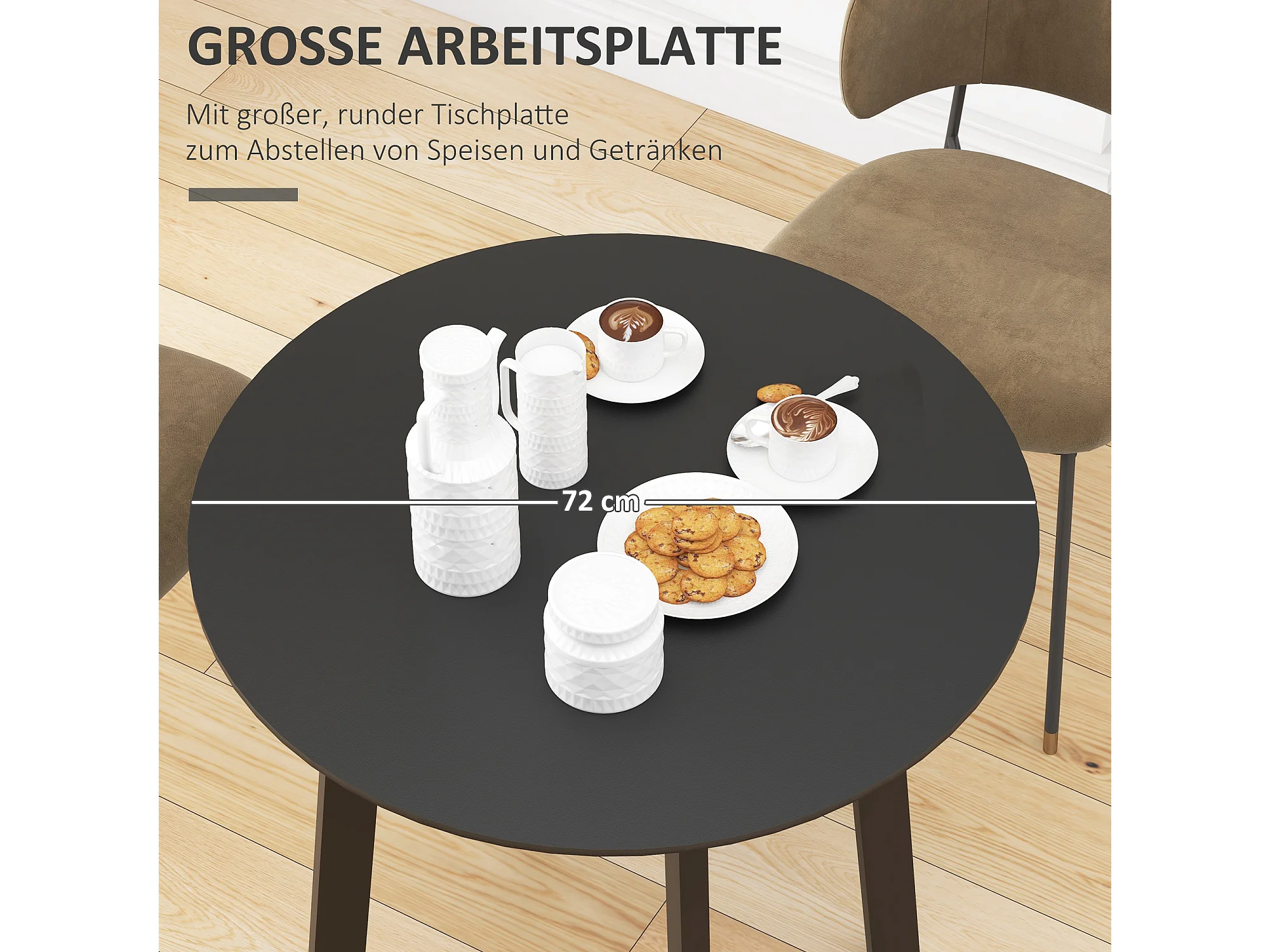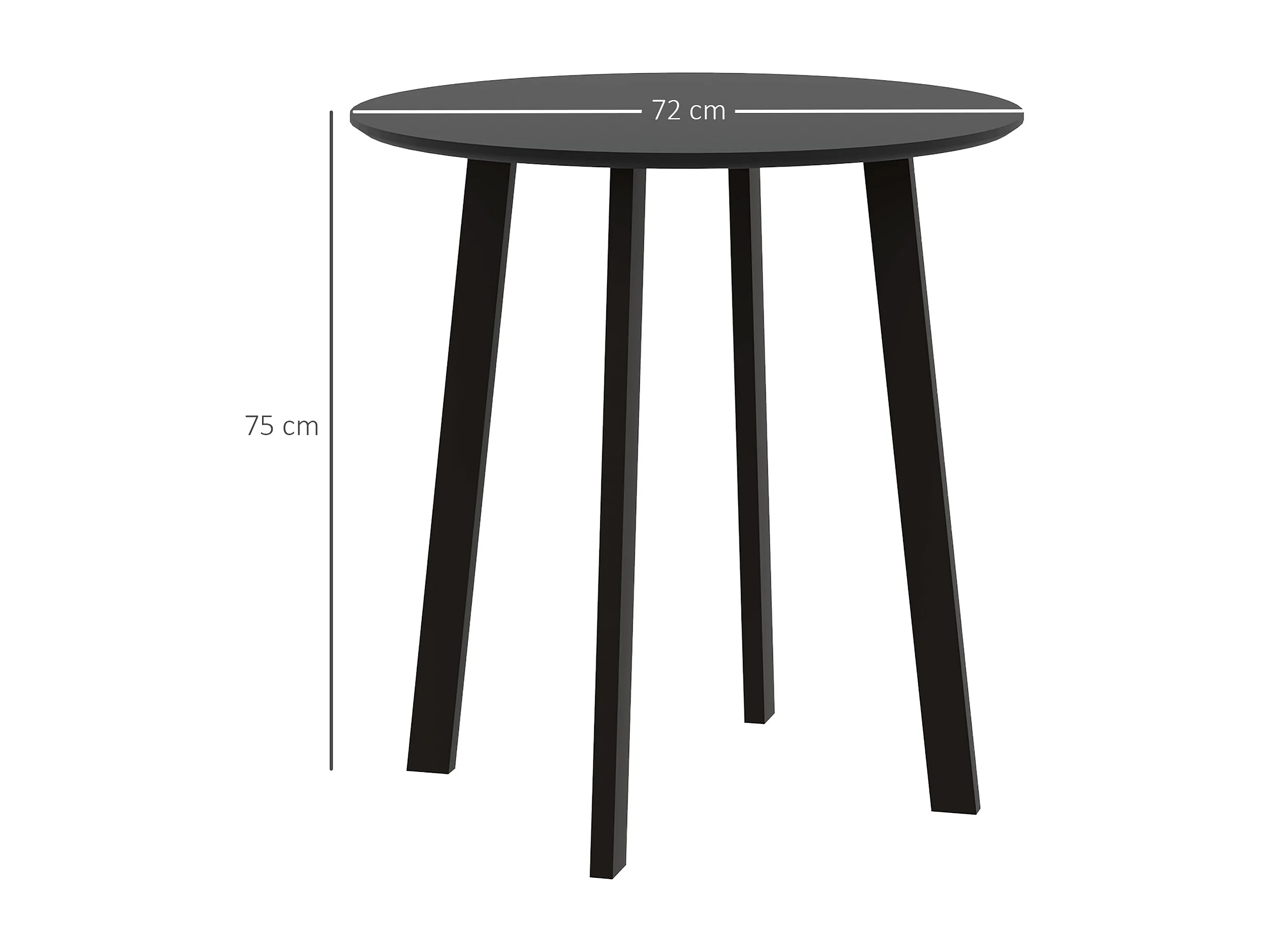 Ronde eettafel, zwart gelakt MDF-blad, schuine metalen poten, modern design (Ø72x75cm)