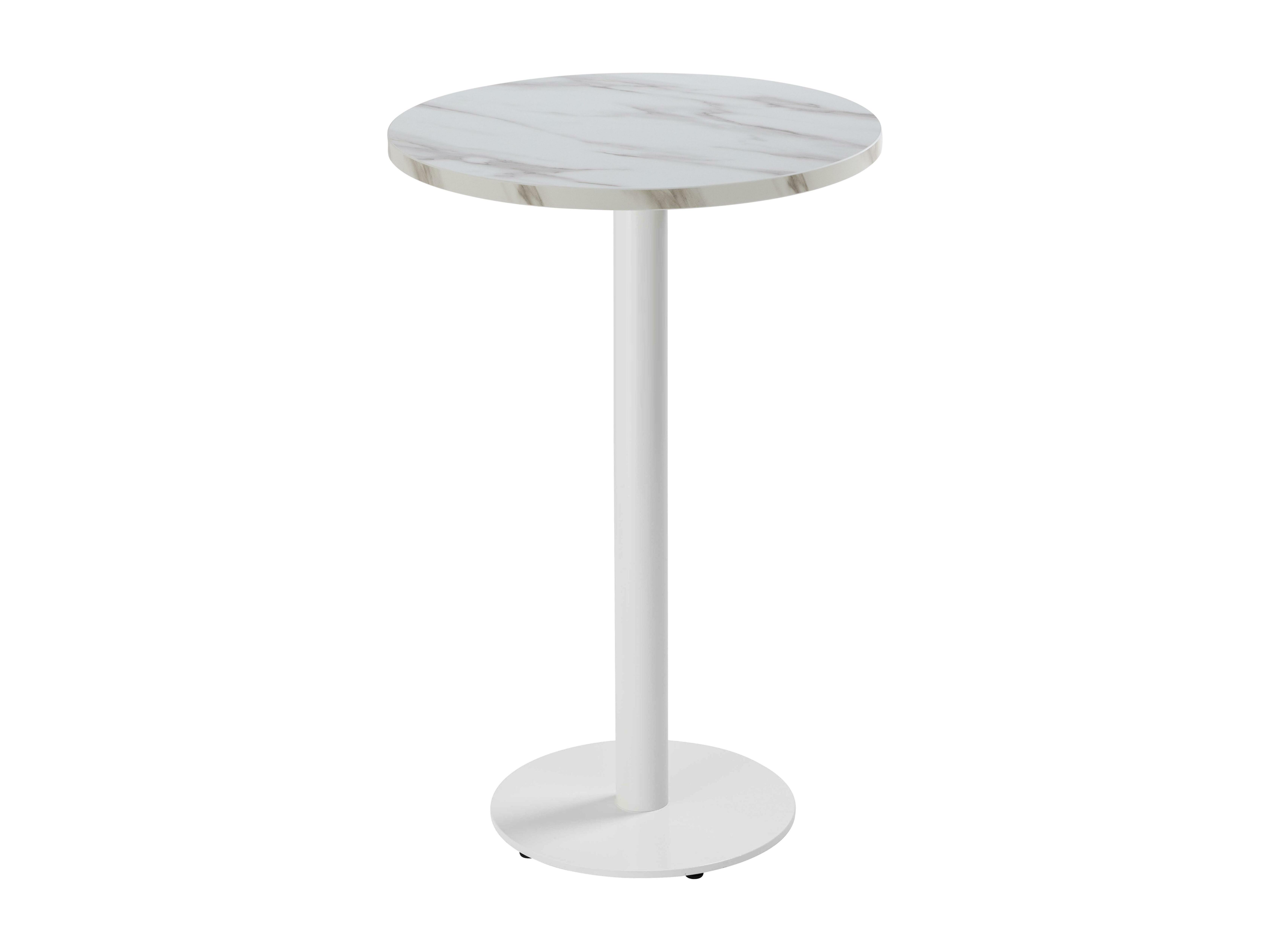 Ronde hoge tafel 60 cm met wit onderstel en wit marmeren blad