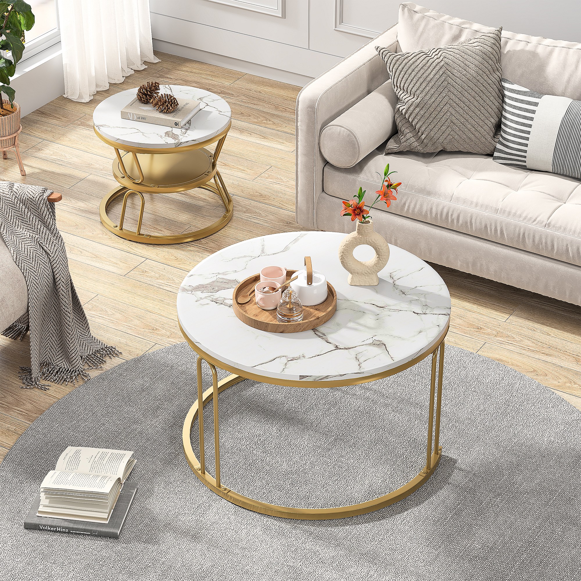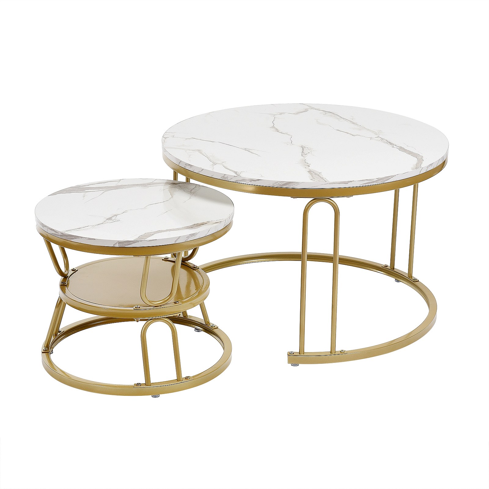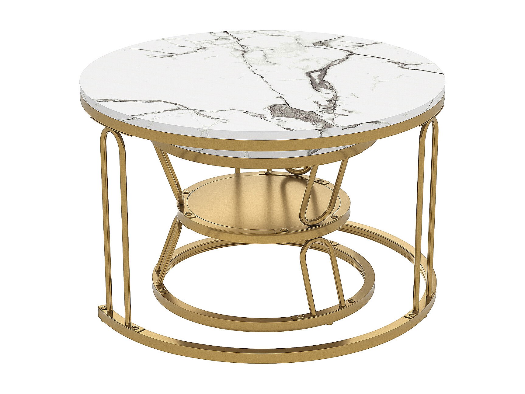 Ronde salontafels met wit marmereffect en U-vormig goudkleurig metalen frame - Modern en elegant design voor de woonkamer