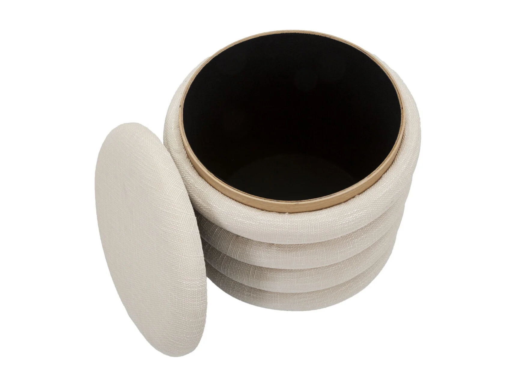 Crèmekleurige poef met bak, set van 3, ø 40,5x49,5-35x42-31x38 cm