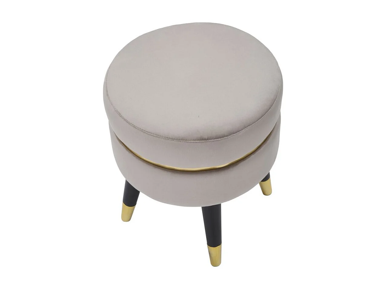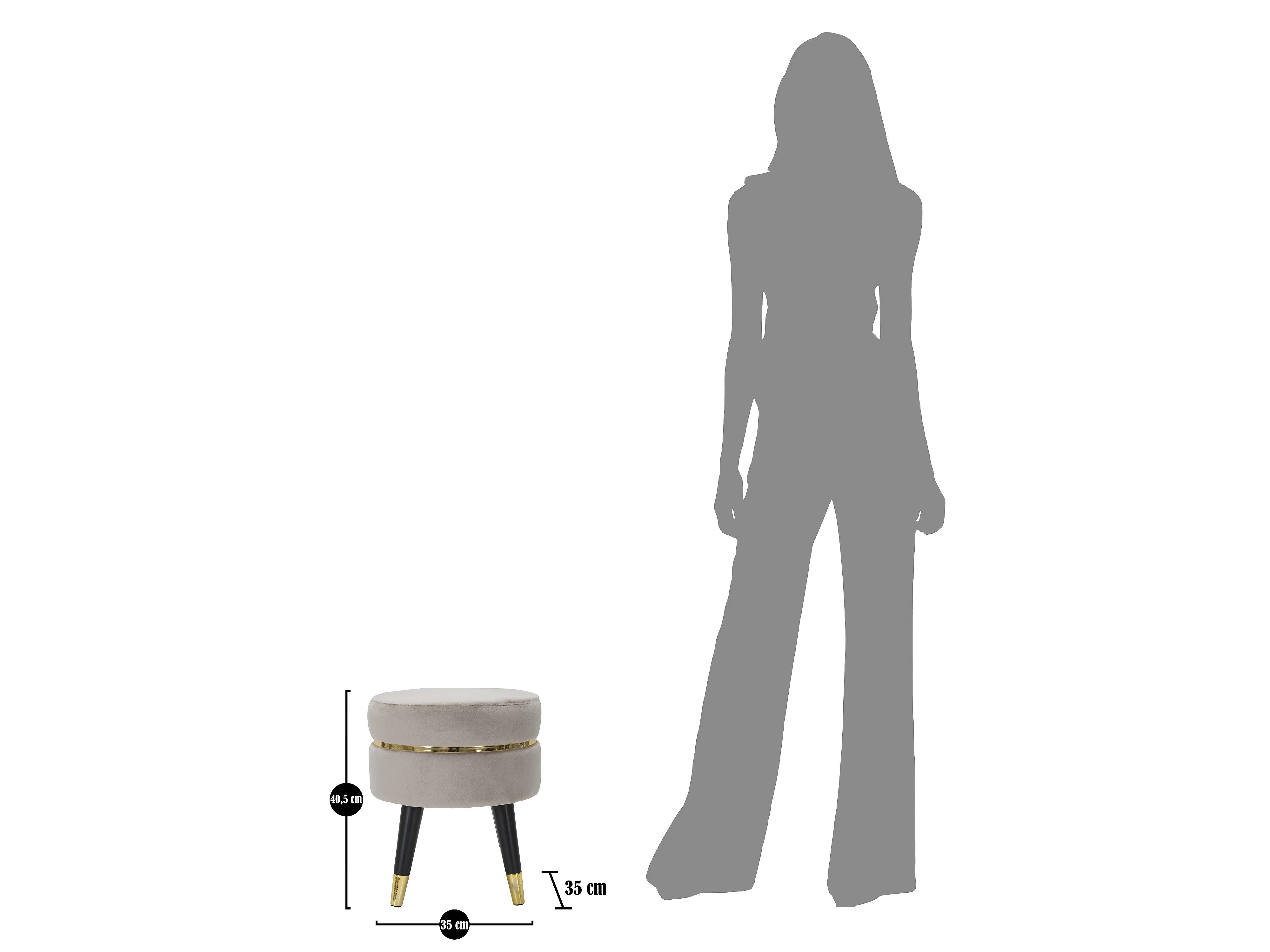 Ronde poef in grijze stof met houten poten Ø cm 35X40,5