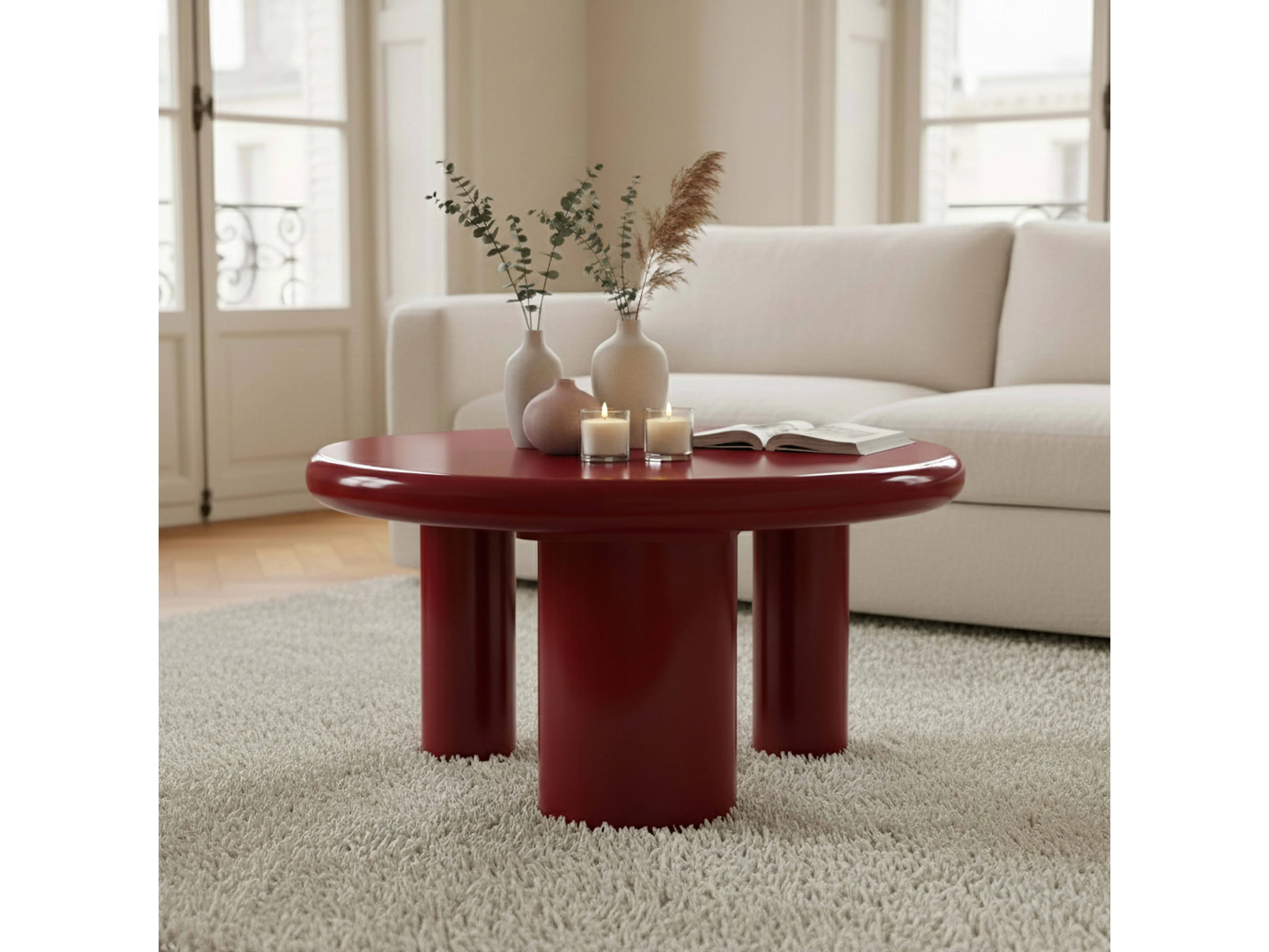 Ronde salontafel 100 cm in rood gelakt MDF